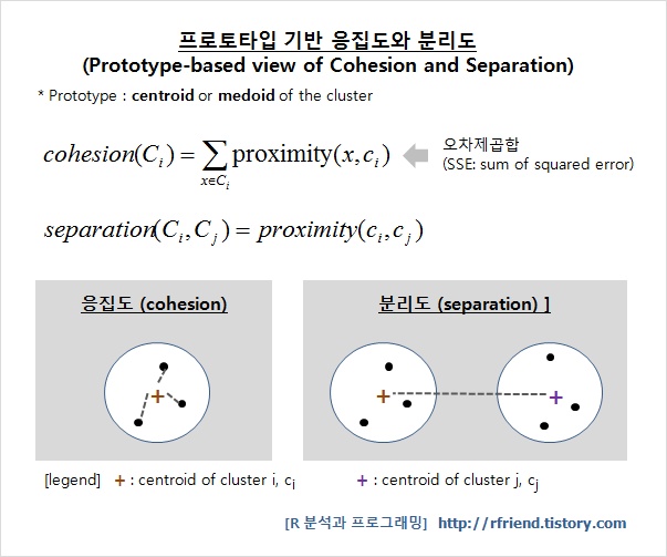 - 원리 : 군집 내 응집도 최대화/ 군집 간 분리도 최대화 관련 설명