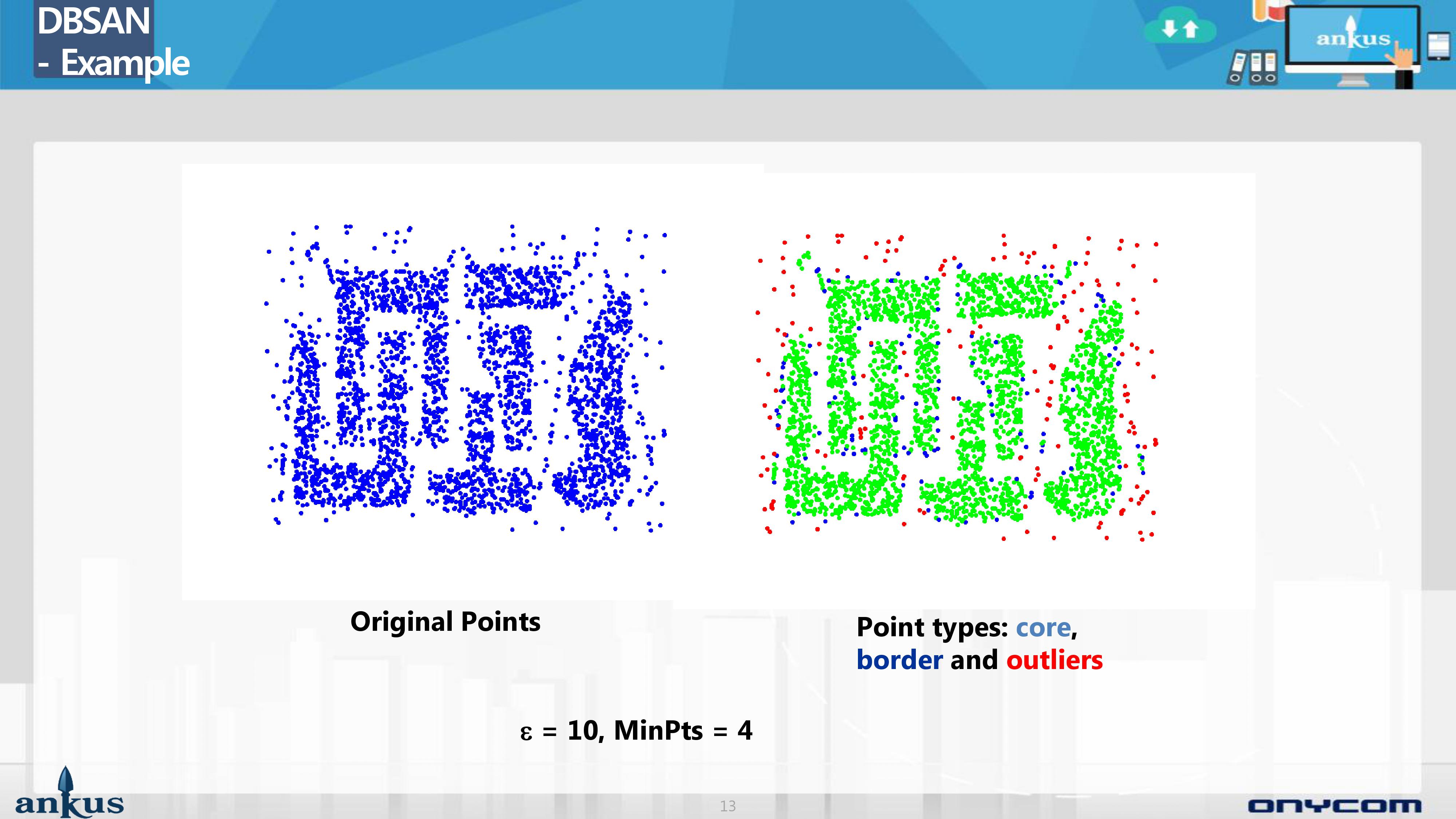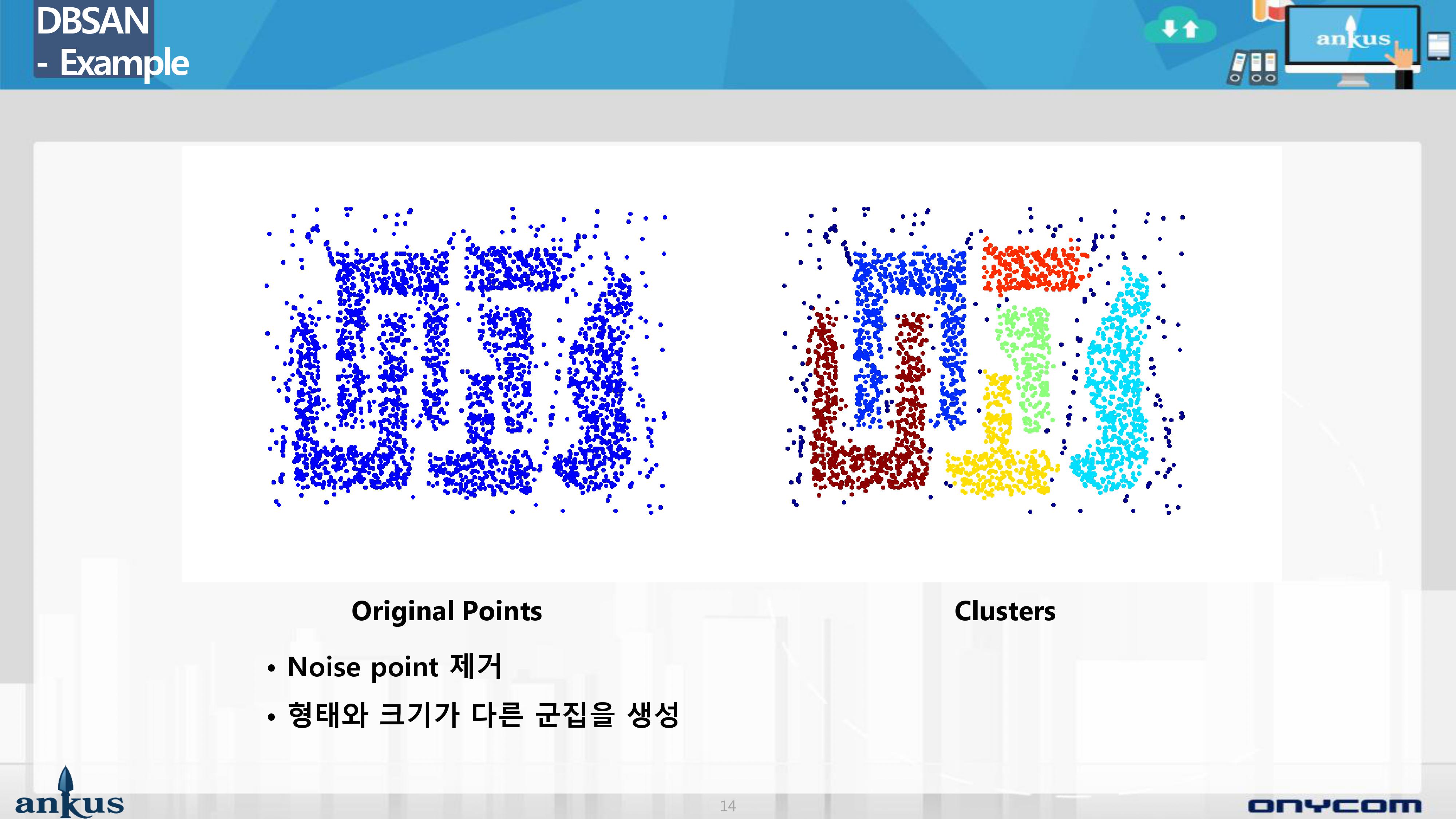 – Parameter e 를 어떻게 설정 하느냐에 따라 도출되는 cluster들이 달라짐