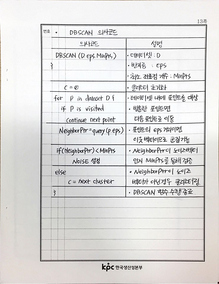 3) 주어진 데이터 내의 모든 점 조사 후, 클러스터링 라벨링