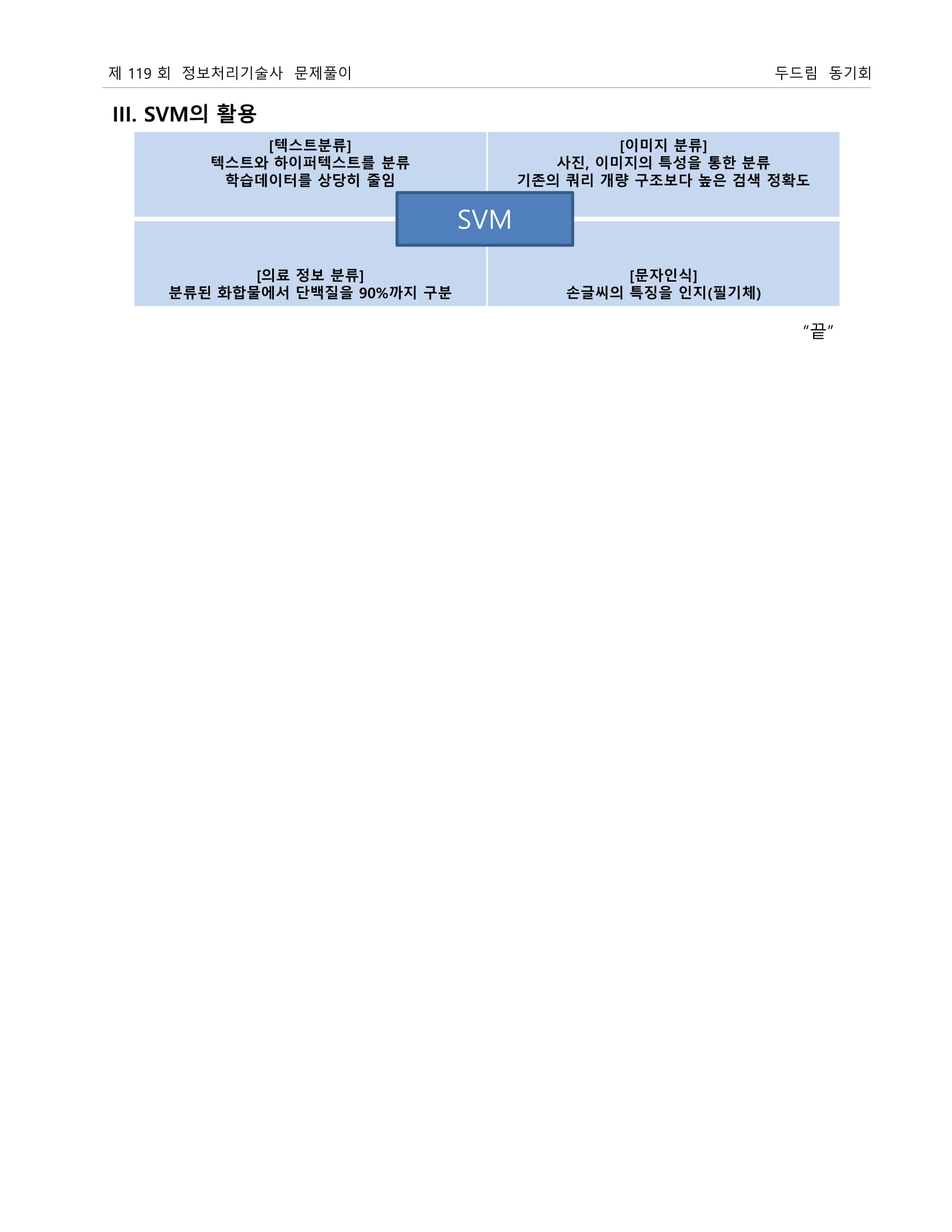 2)이진분류시 효율적(상대적으로 Decision Tree, Neural NW보다 빠르고 쉽게 분류가능)