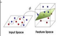 비선형 패턴을 분리하기 위하여 비선형 패턴의 입력공간을 선형 패턴의 feature space 로 변환(고차 공간) 하고 해당 비선형 경계면을 찾는방법