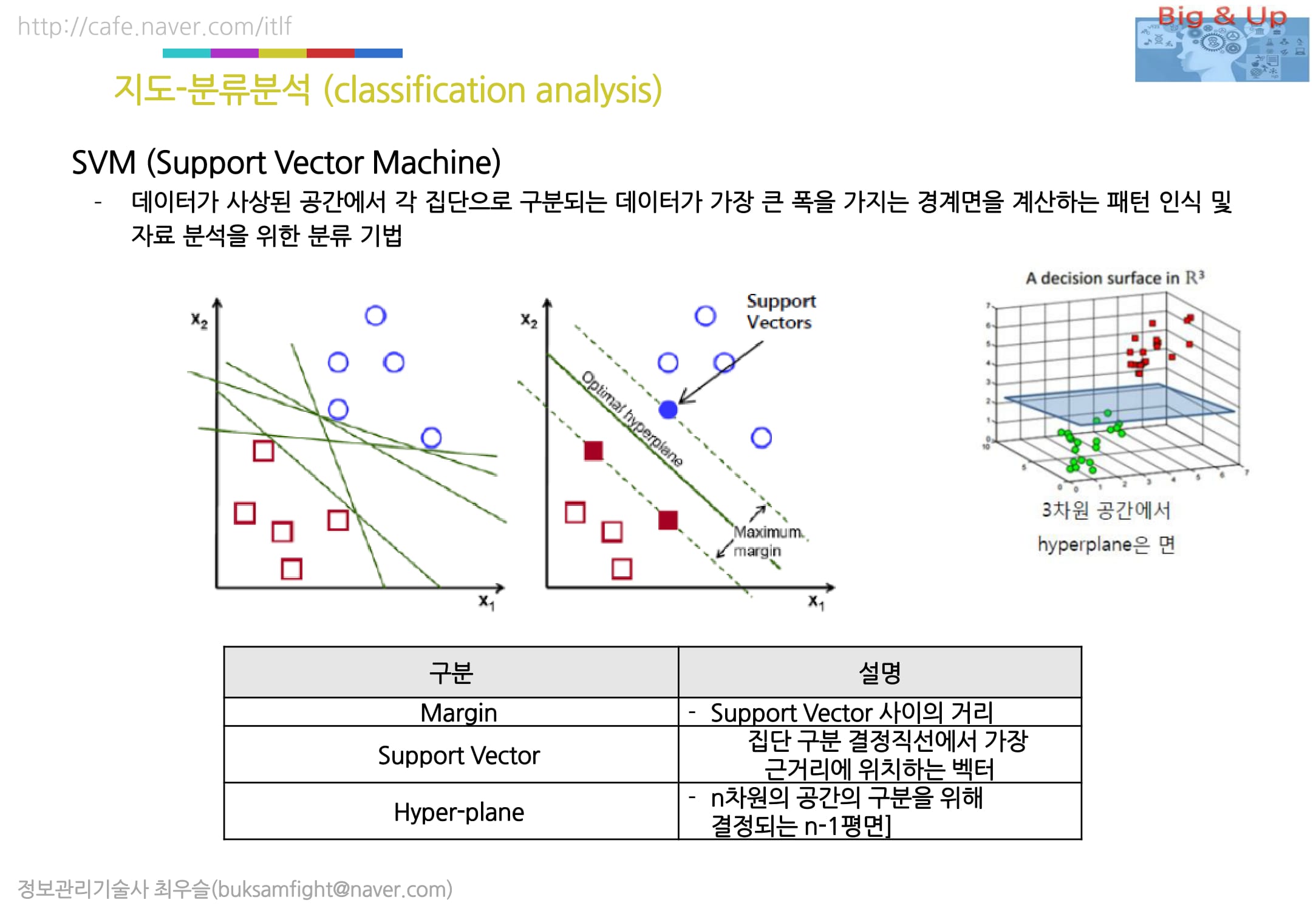 분류분석, Margin, Support Vector, 초평면, 커널함수, 오차가 0에 수렴 , 이진분류기, 패턴인식, 자료분석(분류, 회귀분석)