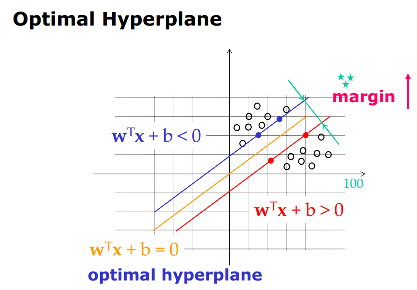 3)Margin:Class 의 Support Vector 와 B Class 의 Support Vector 사이의 거리