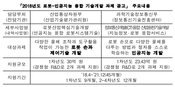 산업통상자원부와 과학기술정보통신부는 로봇과 인공지능 기술의 융합을 통한 신산업 창출과 기술경쟁력 확보를 위해 ‘로봇-인공지능 융합 원천기술개발’...