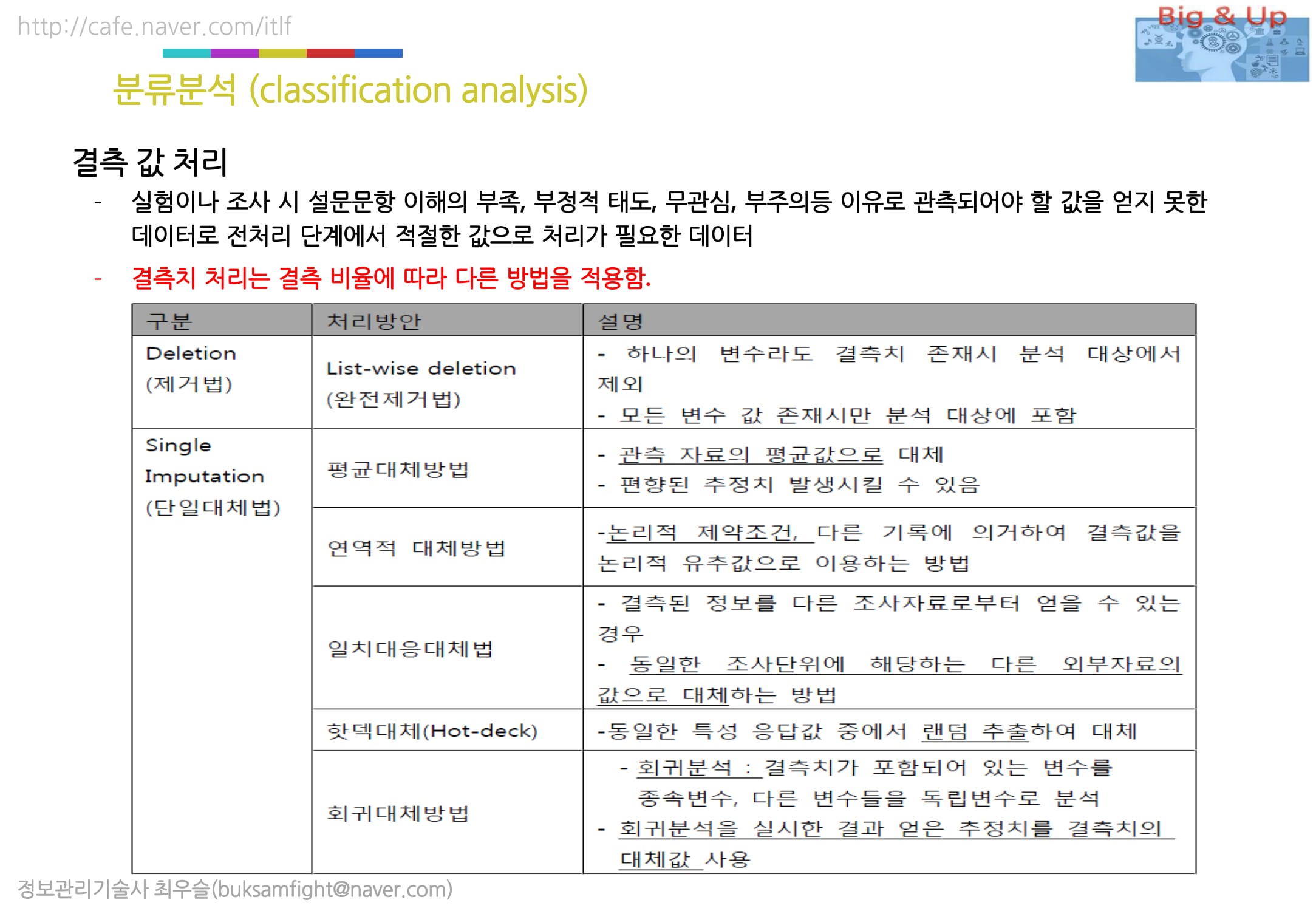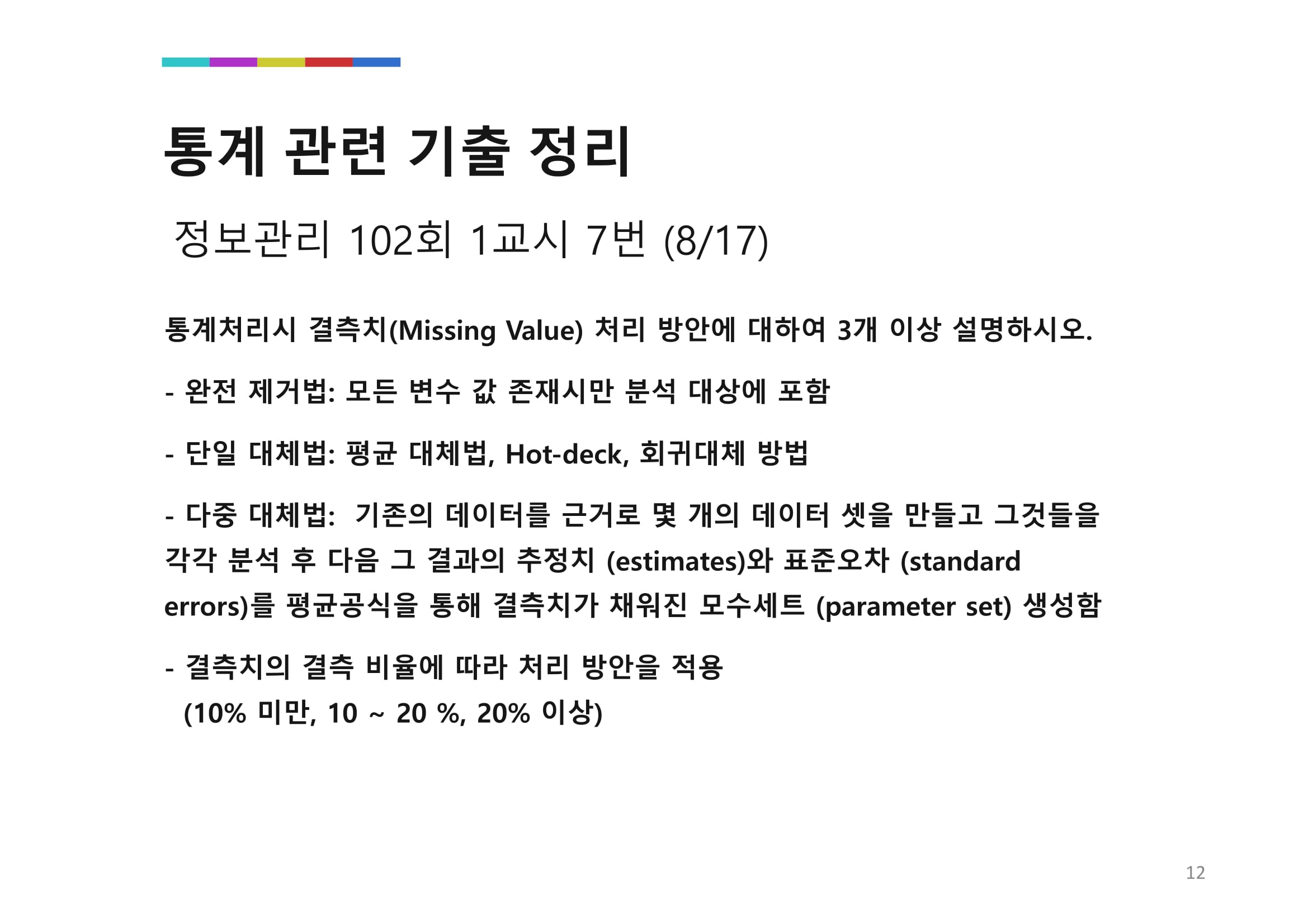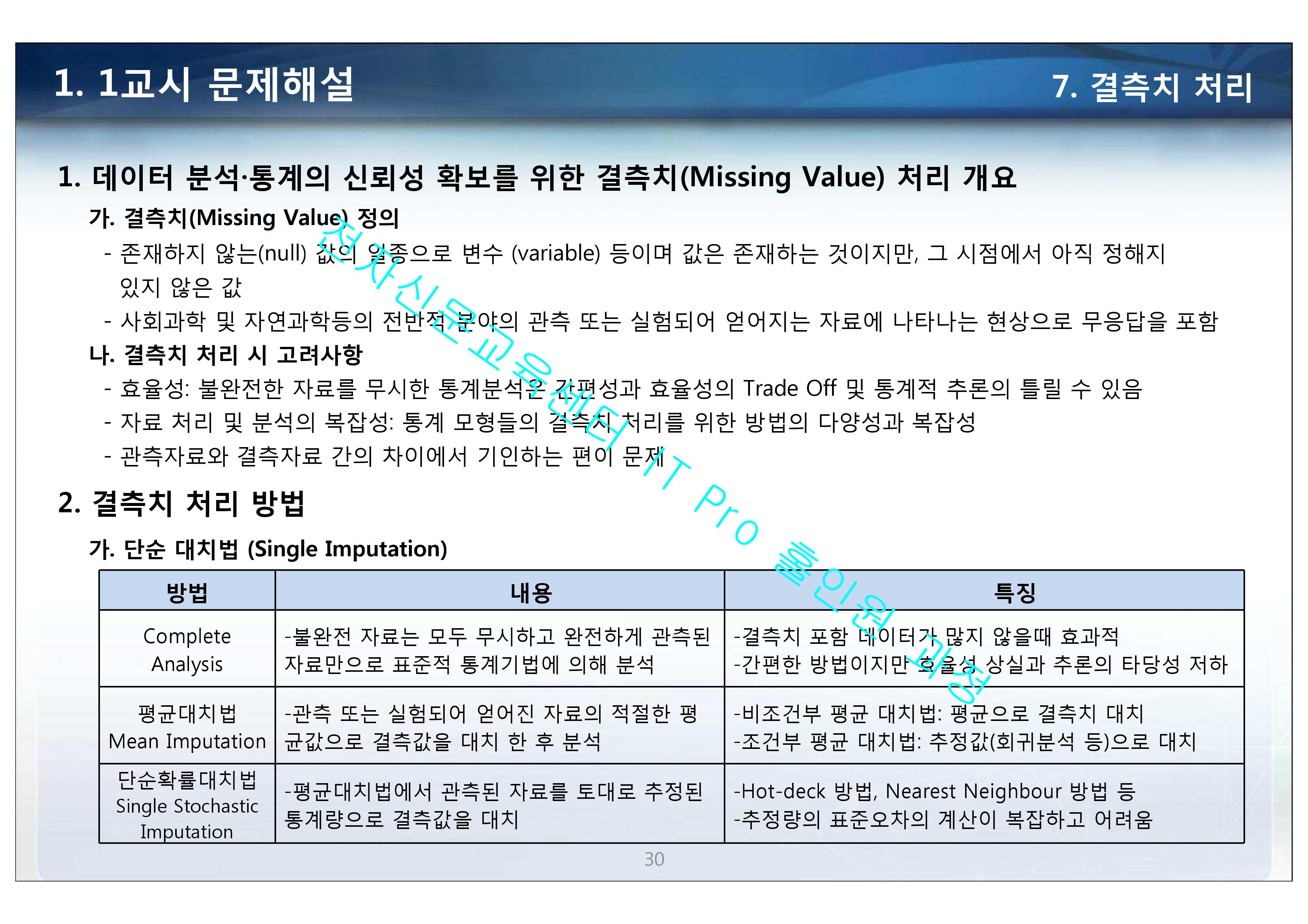 - 대체값을 구한 후 자료 분석 추정된 계수 통합