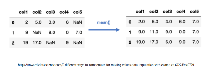 - 평균값, 중앙값 또는 최빈값으로 대체: 결측치를 해당 열의 평균값, 중앙값 또는 최빈값으로 대체합니다. 수치형 데이터에 주로 사용됩니다.