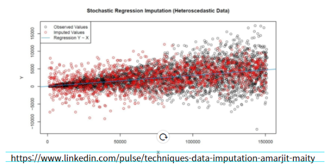 - 회귀분석을 실시한 결과 얻은 추정치를 결측치의 대체값 사용