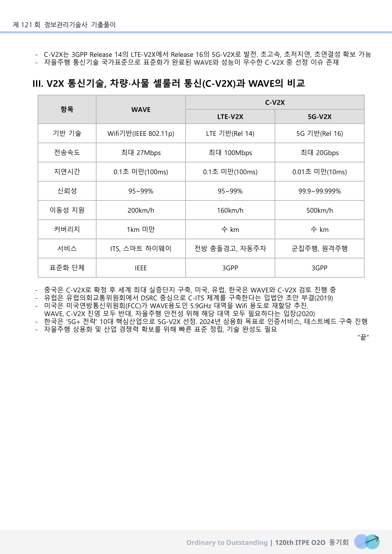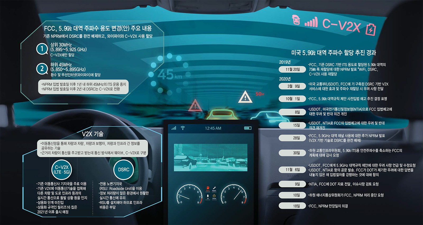 미국은 그간 웨이브를 중심으로 운영해왔으나 상용화가 더디고, C-V2X가 훨씬 안정적이고 탄력적인 운영이 가능하다.