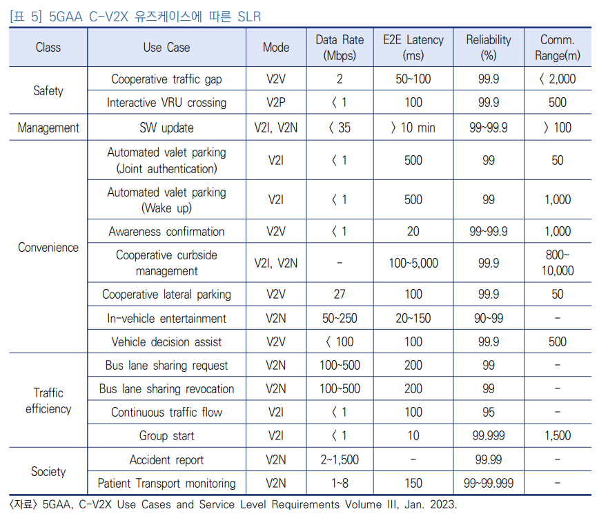 C-V2X 기반 커넥티드 차량을 위한 유즈케이스 분석 및 서비스 기술 개발 동향, 송유승, 2024.03