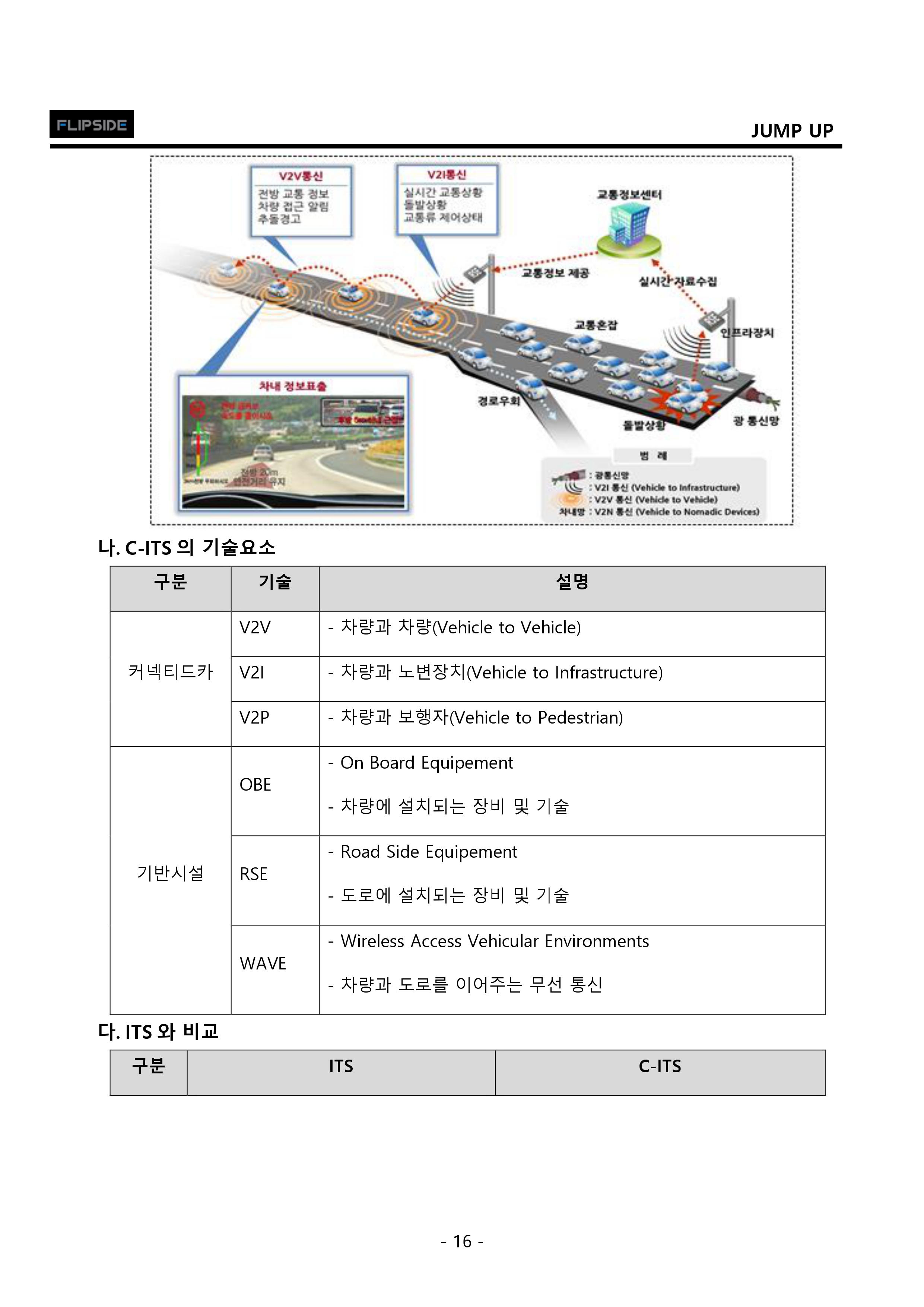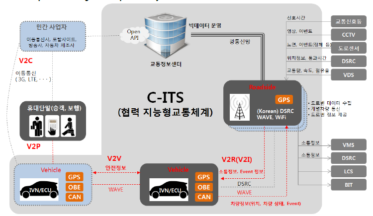 - 근거리전용통신(DSRC)의 일종인 웨이브(WAVE) 방식으로 고속도로에 C-ITS 구축을 시작