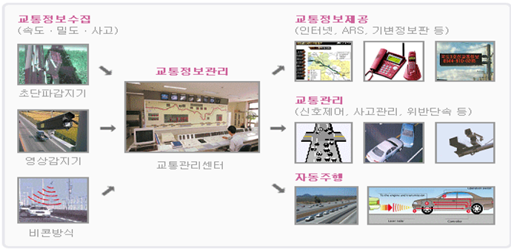 - 도로 교통정보를 ICT 기술을 융합하여 지능적 관리 가능