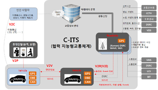 C-ITS(Cooperative ITS)란 차량에 장착된 단말기를 통해 다른 차량 또는 도로에 설치된 인프라와 사고 정체 등 도로 상황 정보를 수집·분석·가공해 교통사고를 예방하는 시스템이다.