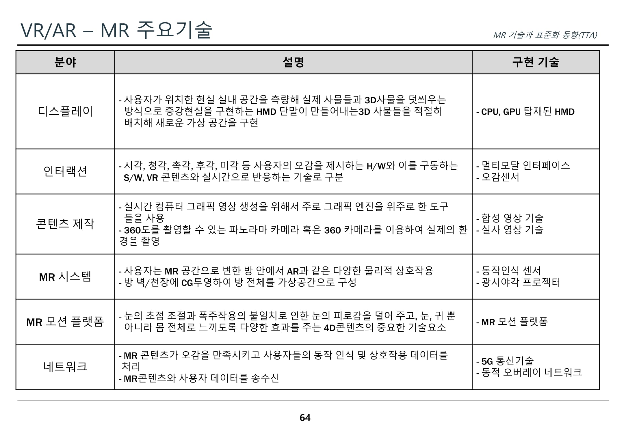 [기술] 몰입형 디스플레이, 인터렉션, 콘텐츠 제작, MR 시스템, MR모션 플랫폼, NW
