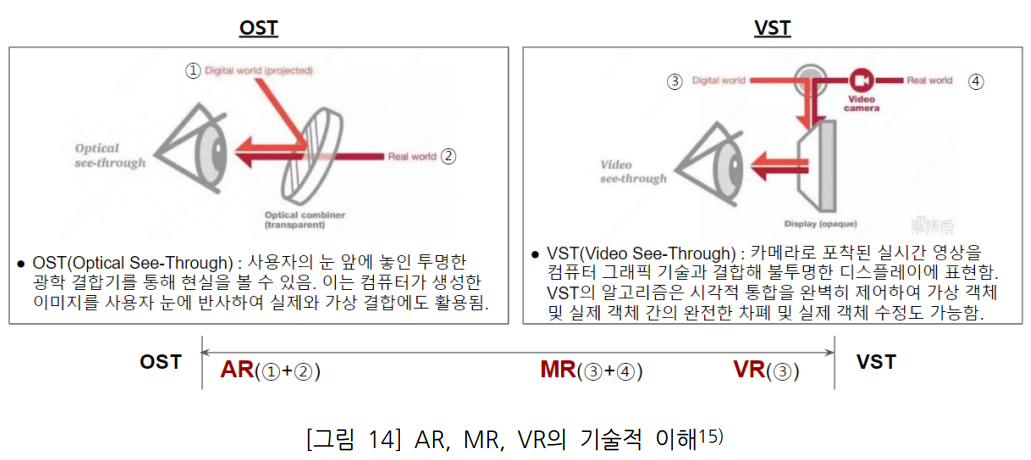 [유형] 착용부의 영상과 외부영상을 동시에 볼 수 있느냐에 따라 See-through(투시 착용형)과 See-Close(완전몰입형)으로 구분