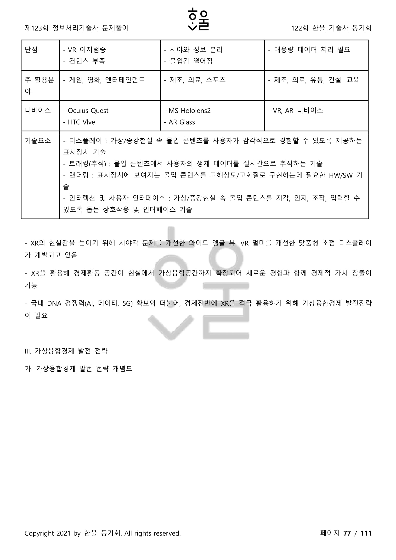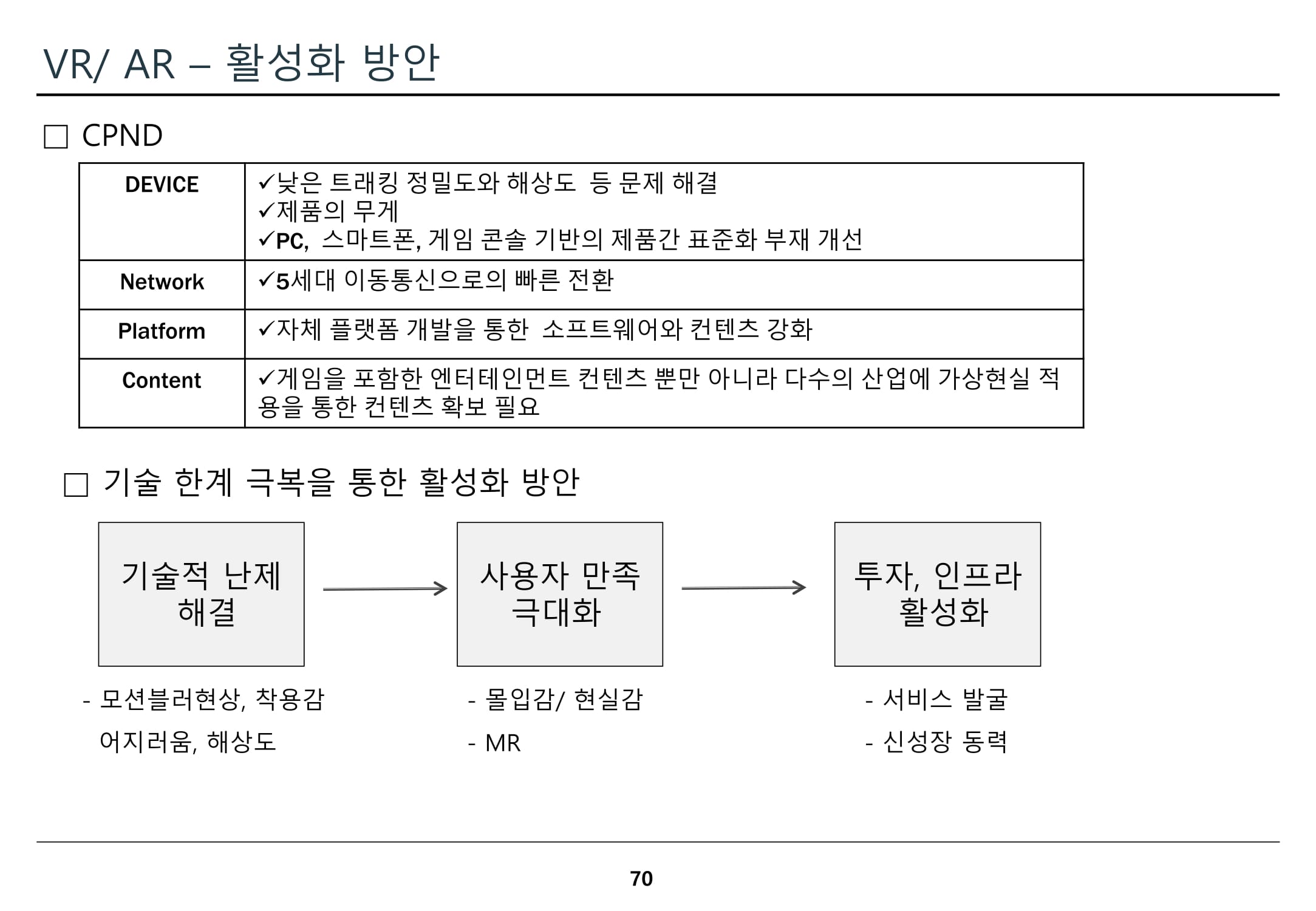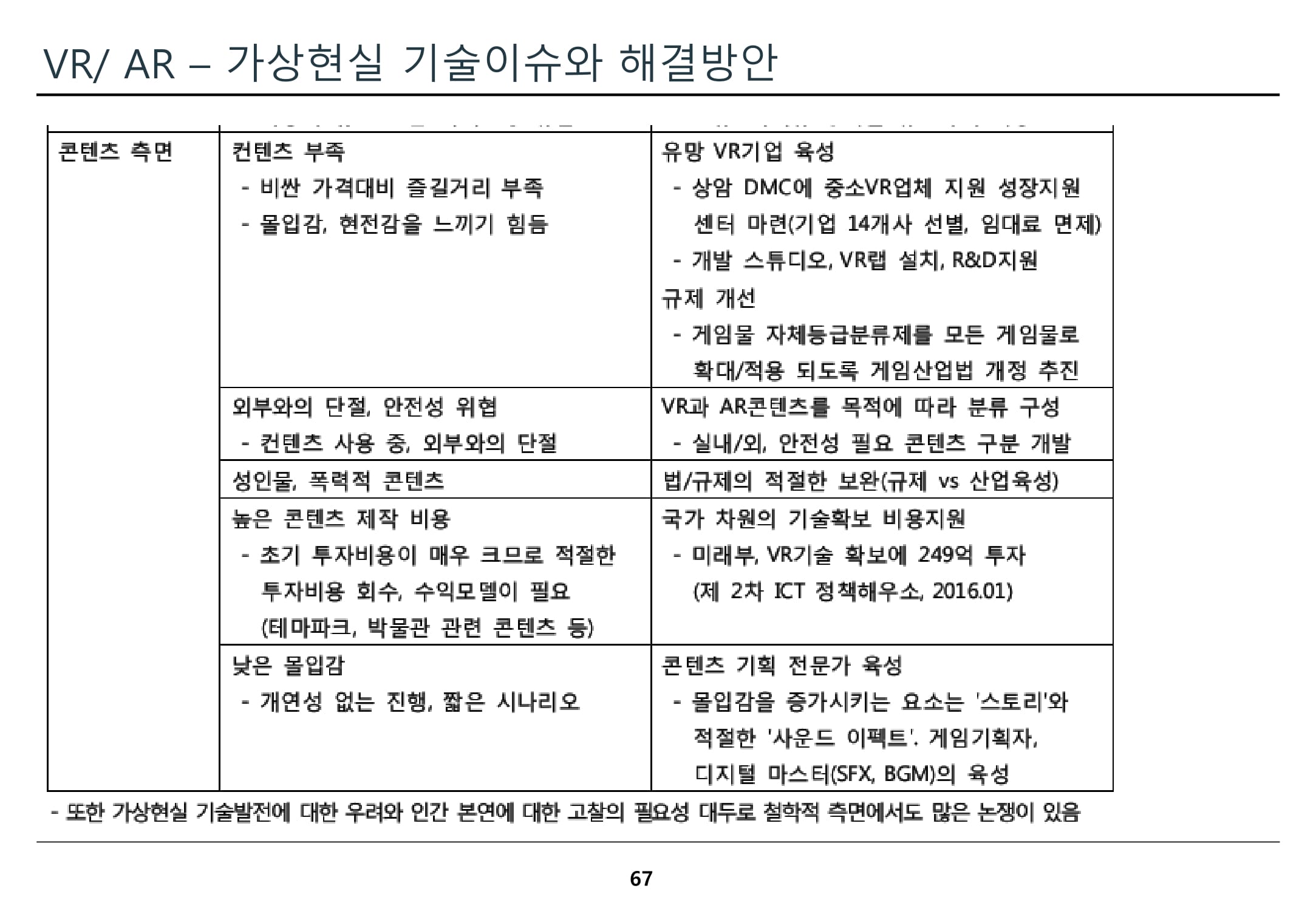 AR·VR의 기술 경쟁력을 갖추는 것도 중요한 경제적·정책적 고려사항이지만 무엇보다 소프트웨어 콘텐츠·서비스의 경쟁력이 우선되어야 함