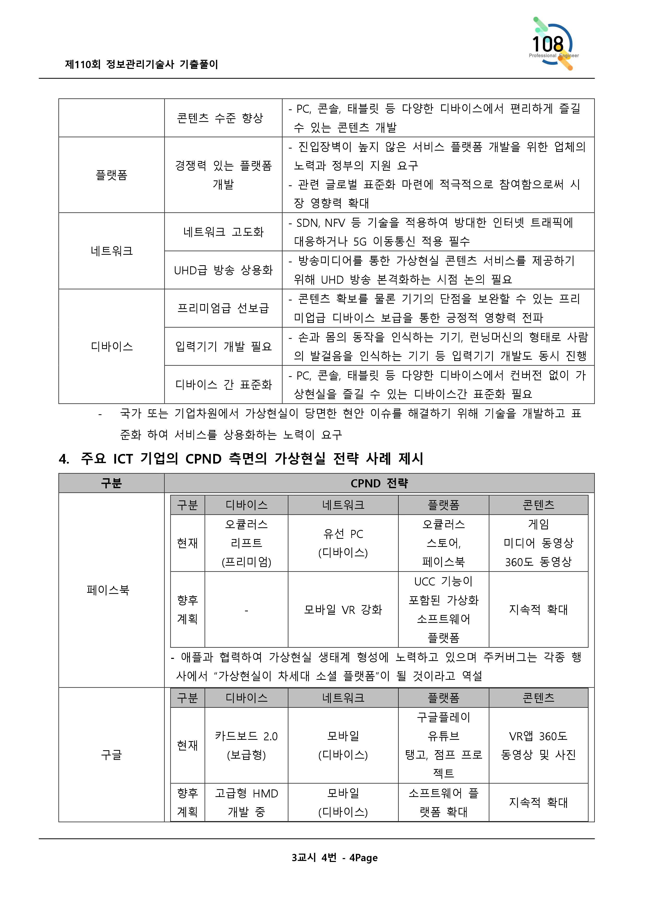 [P]SW플랫폼(구글 탱고-가속도계,자이로스코프,기압계/점프-촬영,편집,업로드,재생),서비스 플랫폼(구글앱스토어,SK텔레콤 옥수수,오큘러스 앱스토어, 삼성전자 기어VR)