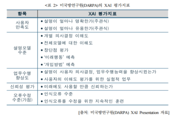 - 미(美) 국방성 산하 국방위고등연구계획국(DARPA)에서는`17년부터 XAI 관련 프로젝트(XAI 학습 모델 개발 및 테스트)를 추진
