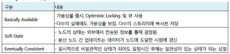 * NoSQL의 특징 (BASE, Basically Available, Soft state, Eventually Consistency)