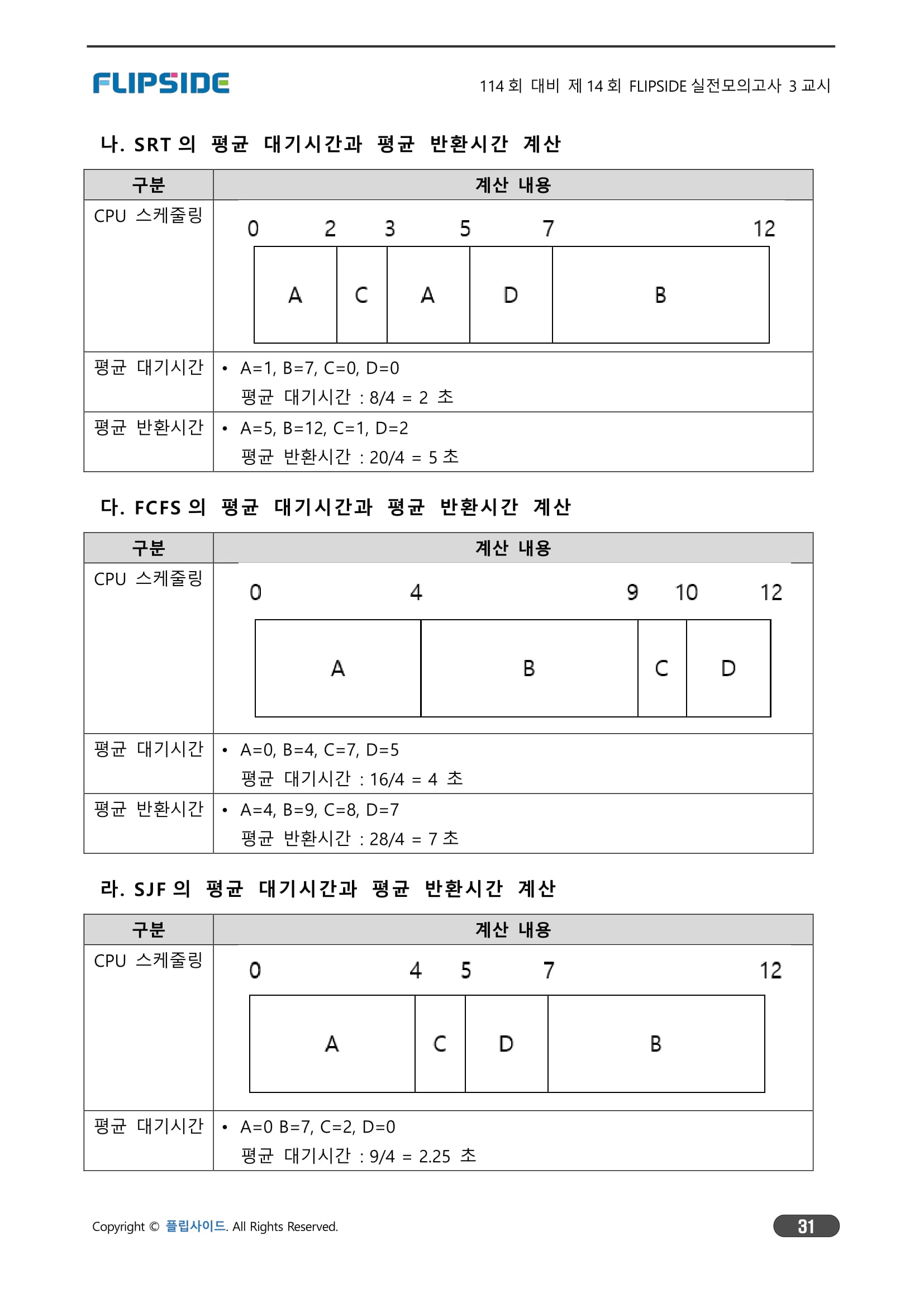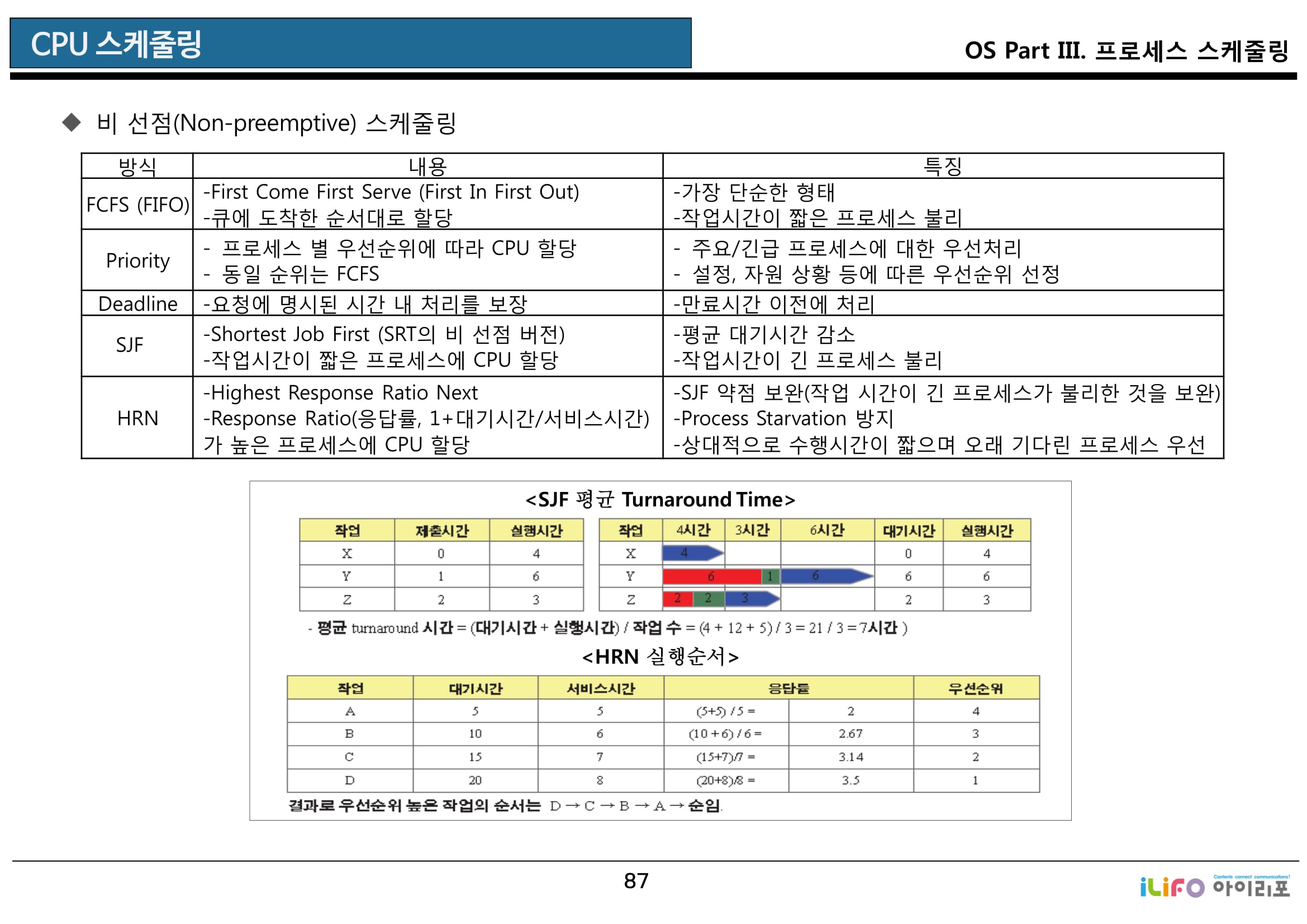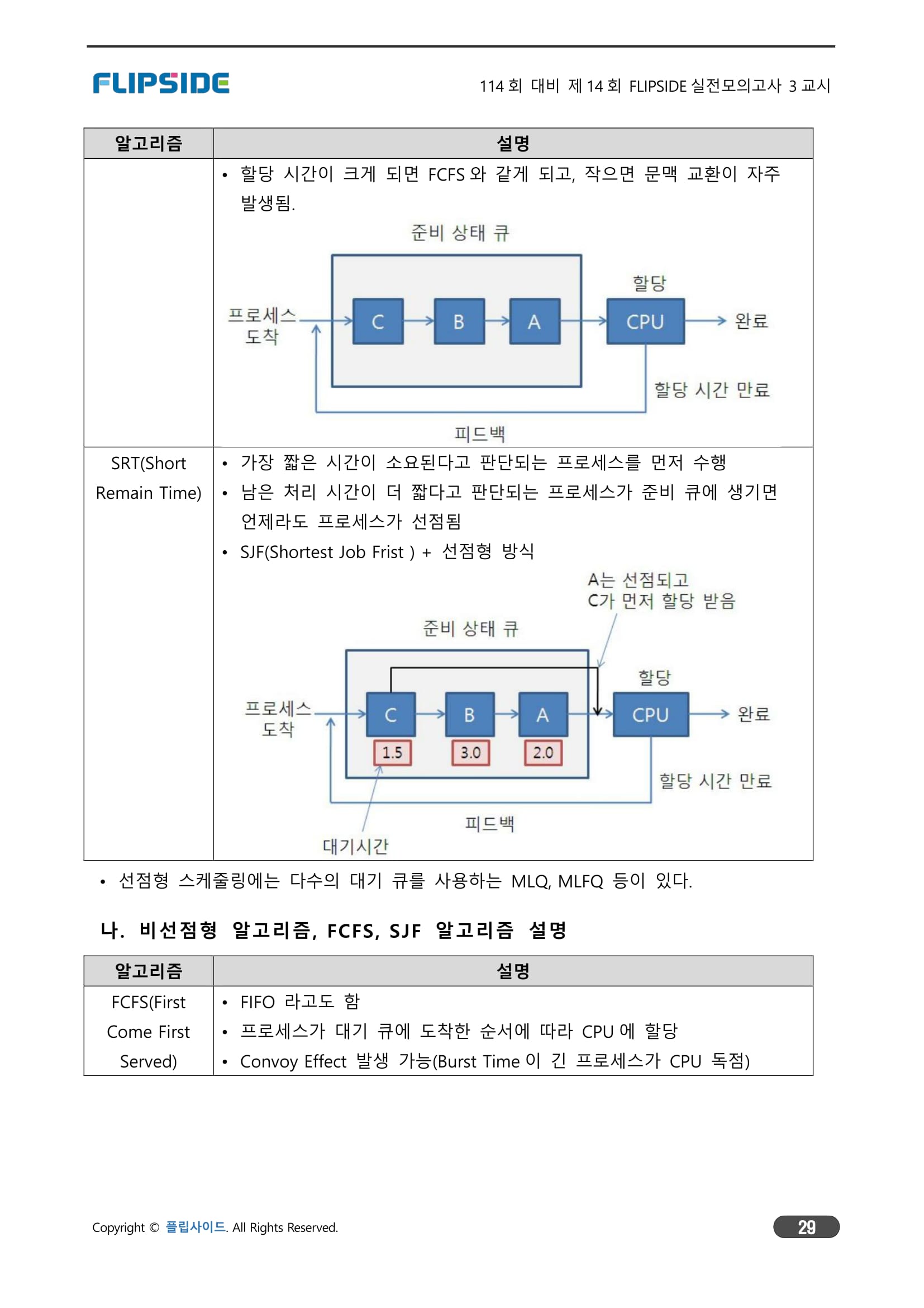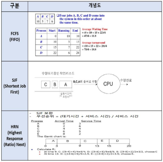 - 일괄처리 시스템에서 주로 사용, 작업 완료 시간을 예측하기 용이 합니다.