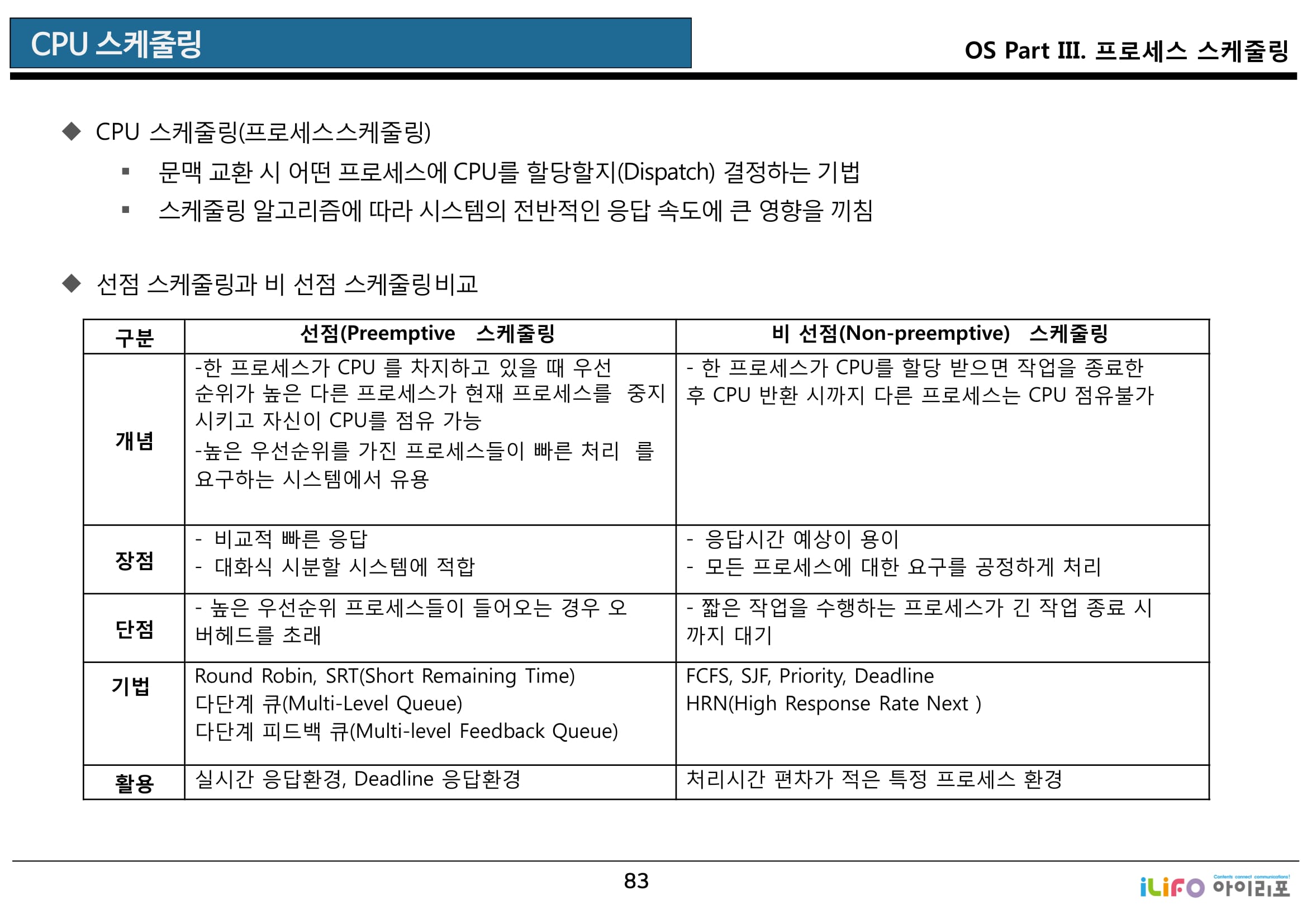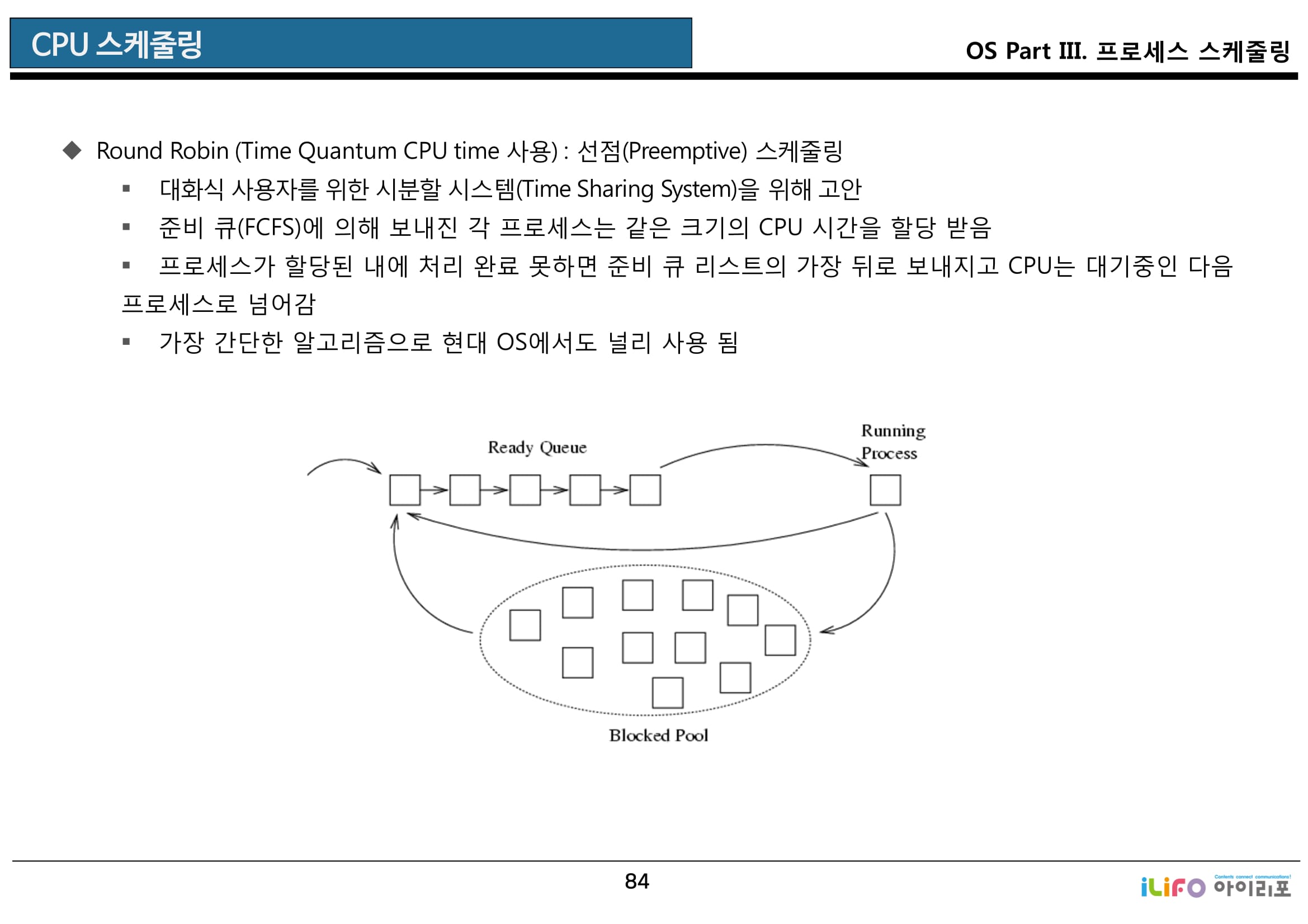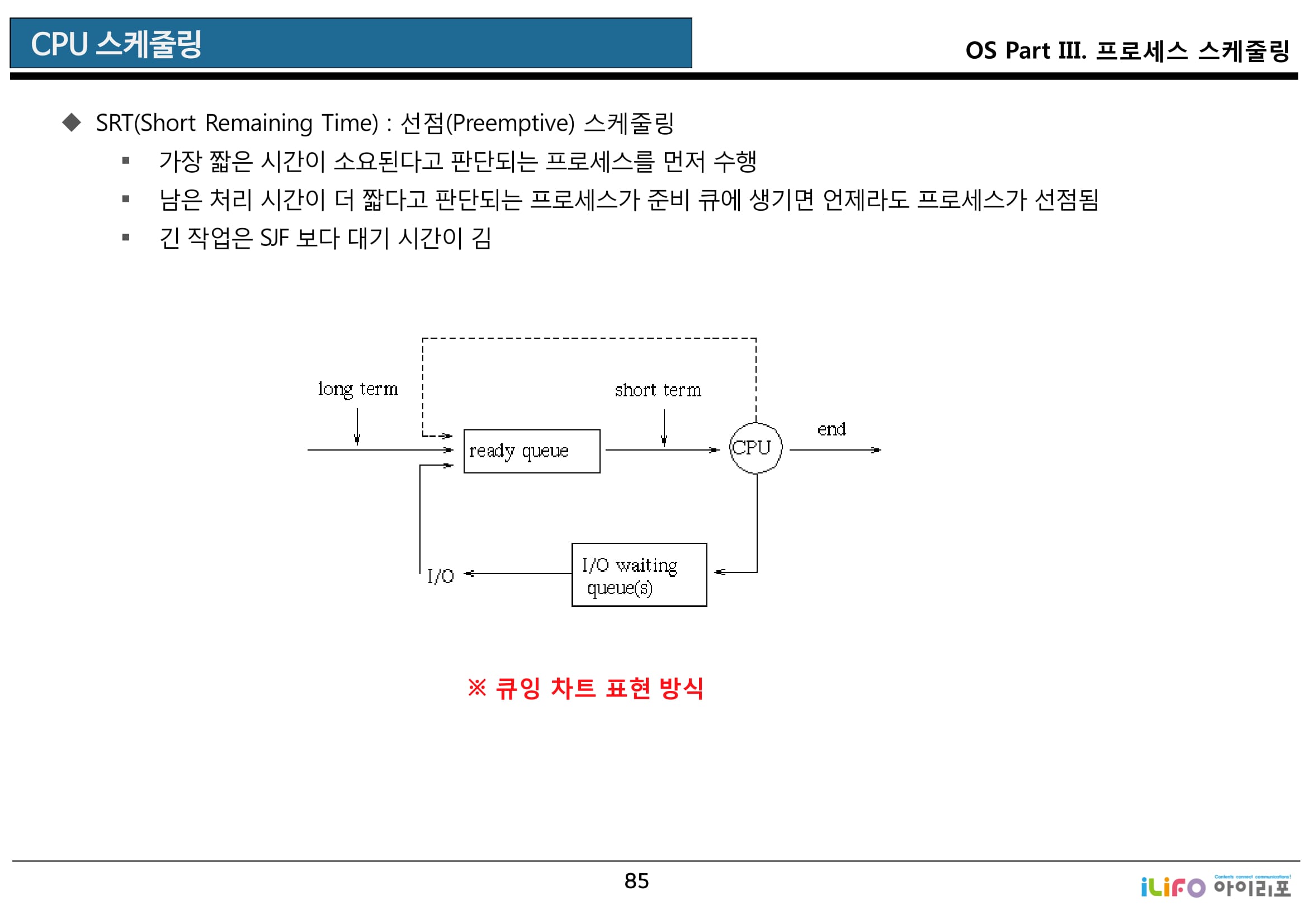 - 시분할 방식에 효과적, 할당시간의 크기가 매우 중요합니다.