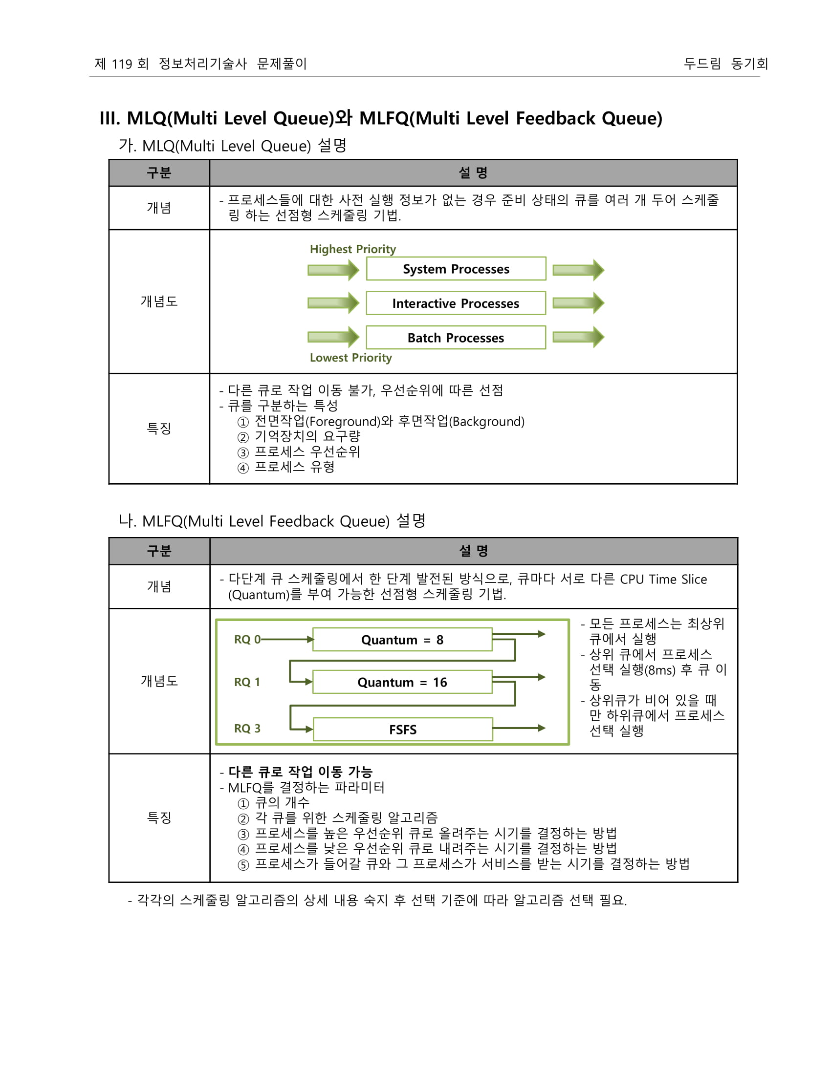 ‧ 장점 : - 적응(adaptive) 메커니즘 (각 큐의 CPU 할당 시간 정할 수 있다)