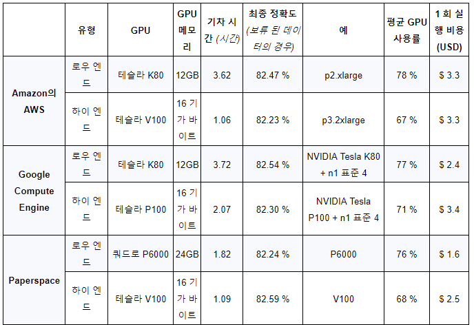 - 비용: GPU 카드 1개에 1만 달러가 넘을 수 있다. 또 대부분의 딥 러닝 프로젝트에는 최소 4개 이상의 GPU 카드가 필요하다.