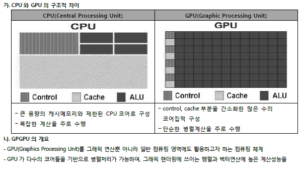 CPU에만 의존하던 고성능 컴퓨팅 시장을 크게 뒤흔들었다. 기존에는 CPU를 여러 개 사용해 복잡한 연산 작업을 처리했지만, CPU보다 크기도 작고 저렴한 GPU를 연산 가속용으로 사용하니 시스템 구축 비용을 크게 낮추면서도 작업 시간을 대폭 단축해 효율을 극대화할 수 있는 것이 드러났기 때문이다.