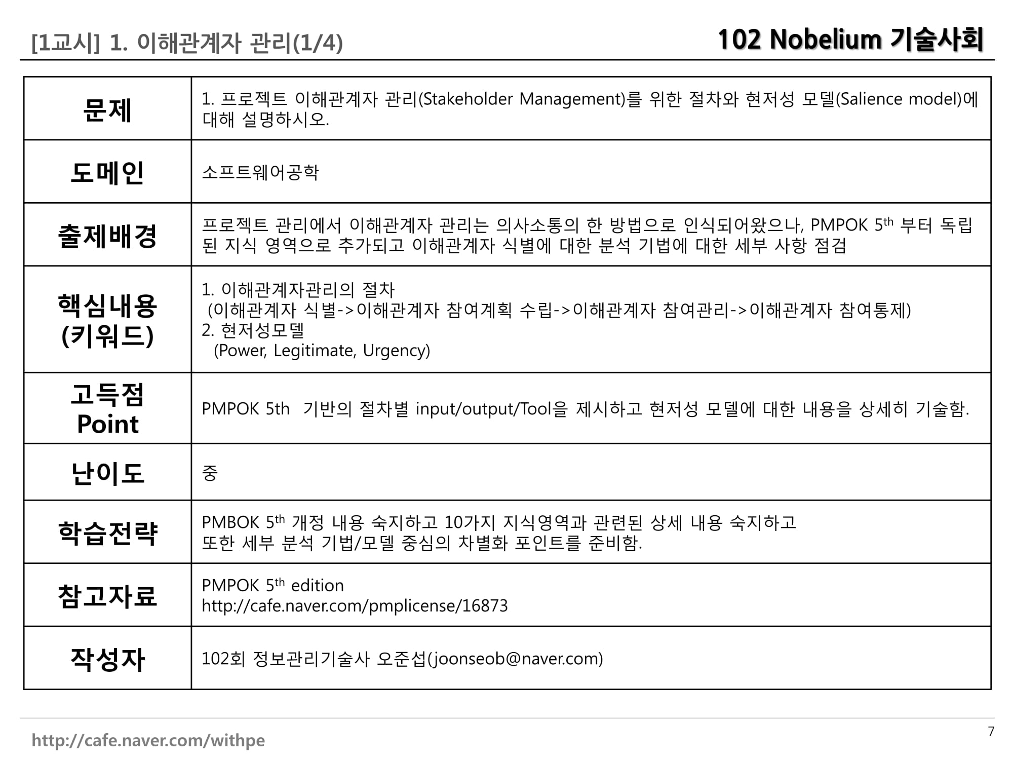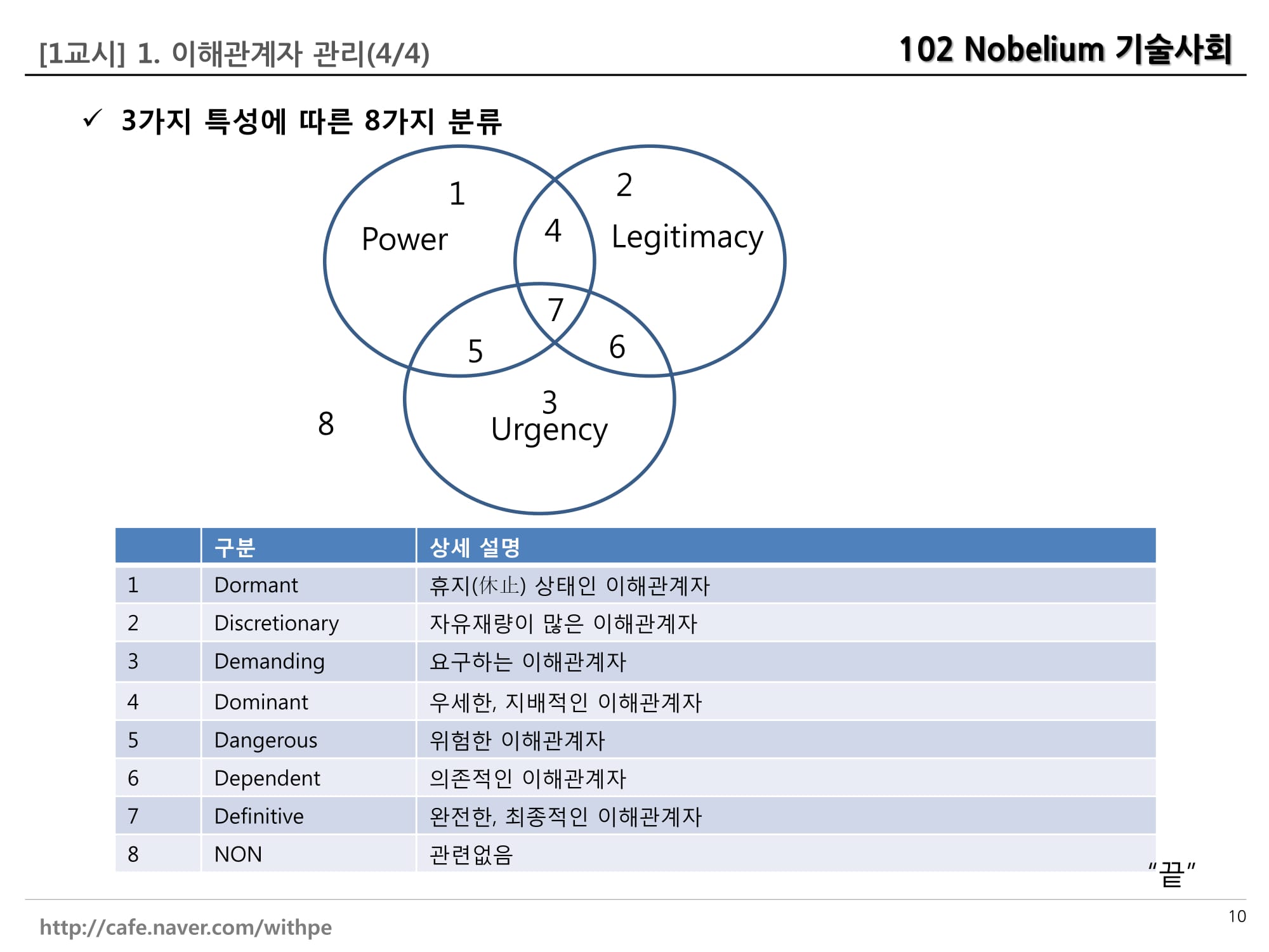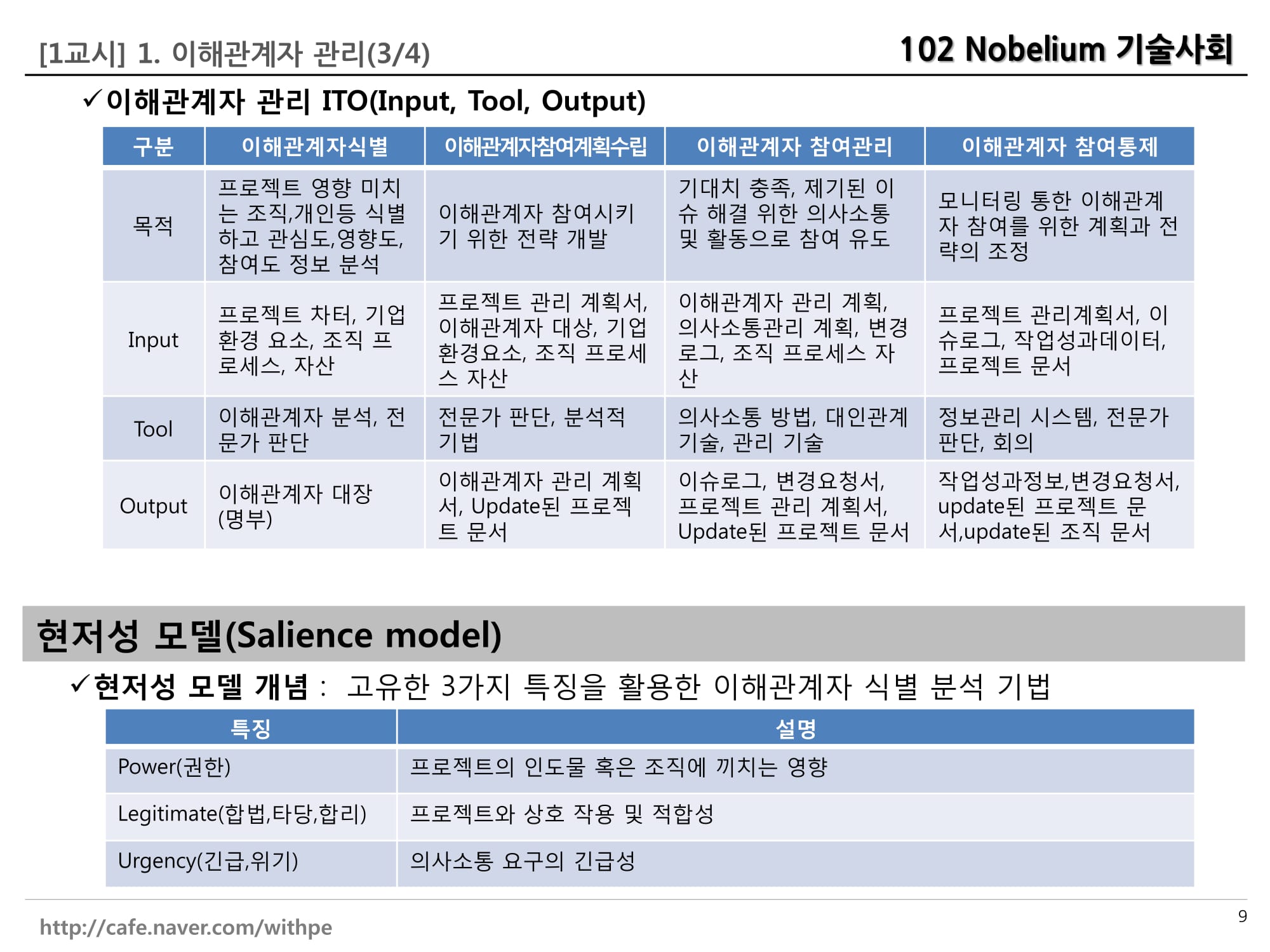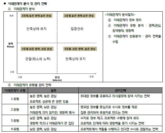 2. 이해관계자 분석 : 현저성모델로, ㅎ이해관계를 분류, 권위형,신속형,합리형으로 분류. 또는