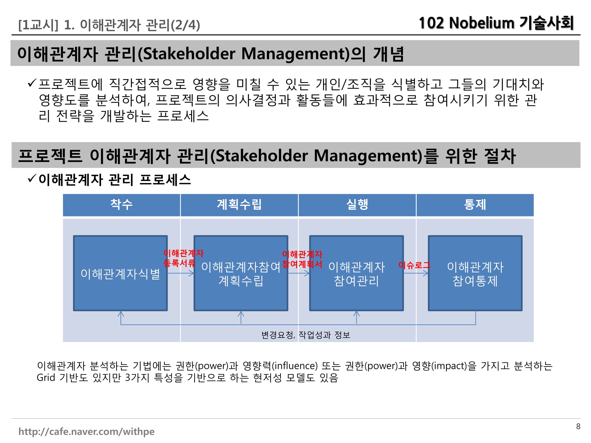 13.1 이해관계자 식별 Skip to end of metadata Go to start of metadata 13.1 이해관계자 식별 이 해관계자 식별은 프로젝트의 의사결정 ,활동 또는 결과물에 영향을 주거나 영향을 받을 수 있는 개인,집단