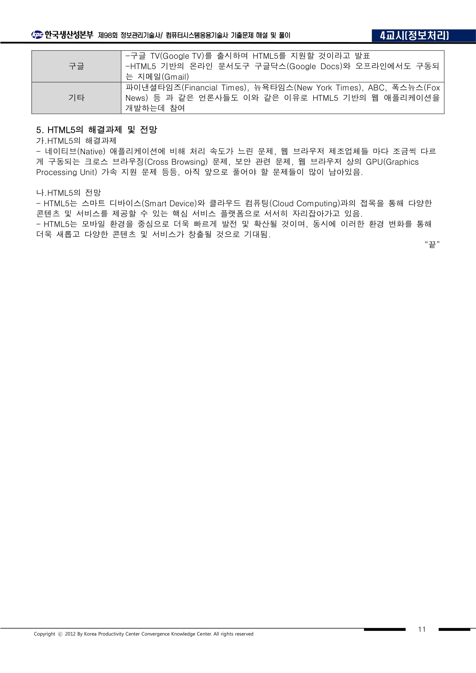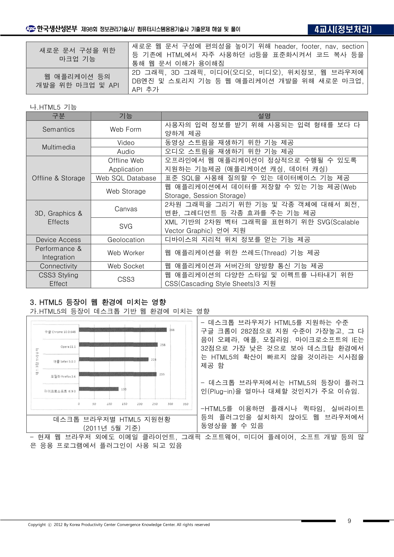 리치 웹 응용의 지원 : 멀티미디어 기능과 오프라인 실행, 측위(Geo Location) 기능을 포함하고 있어 다양한 웹 애플리케이션 개발 가능