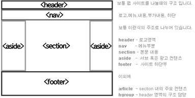 시맨틱 마크업: 기존 HTML4보다 훨씬 더 명확하게 의미 표현이 가능하도록