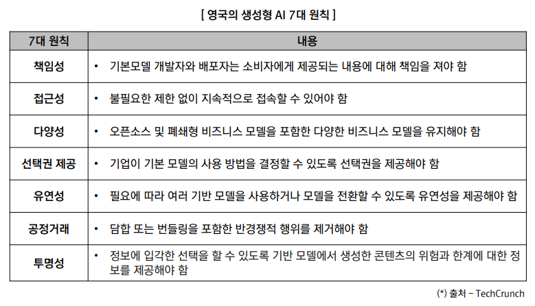 영국 경쟁시장청은 9월 19일, 책임있는 생성형 AI 사용을 위한 7가지 원칙을 발표함.