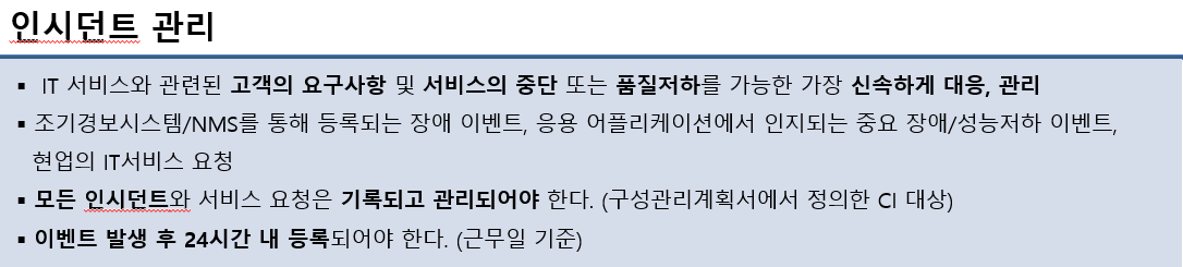 [인시던트] 계획되지 않은 서비스의 중단 또는 서비스 품질을 감소시키는 이벤트