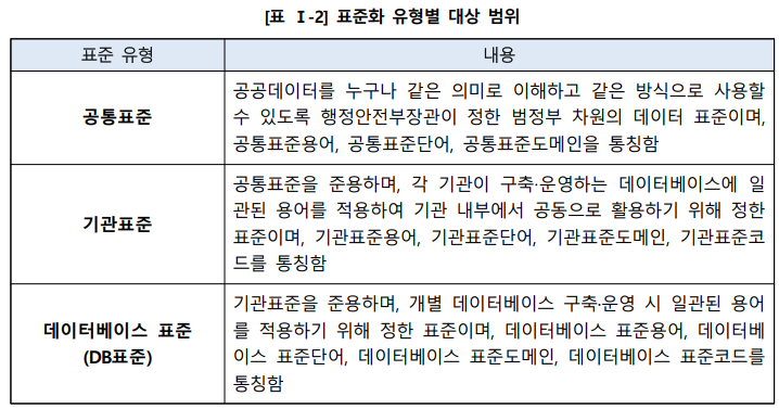 - 데이터 표준 간 관계 및 상위표준 준용 필요성을 명시함
