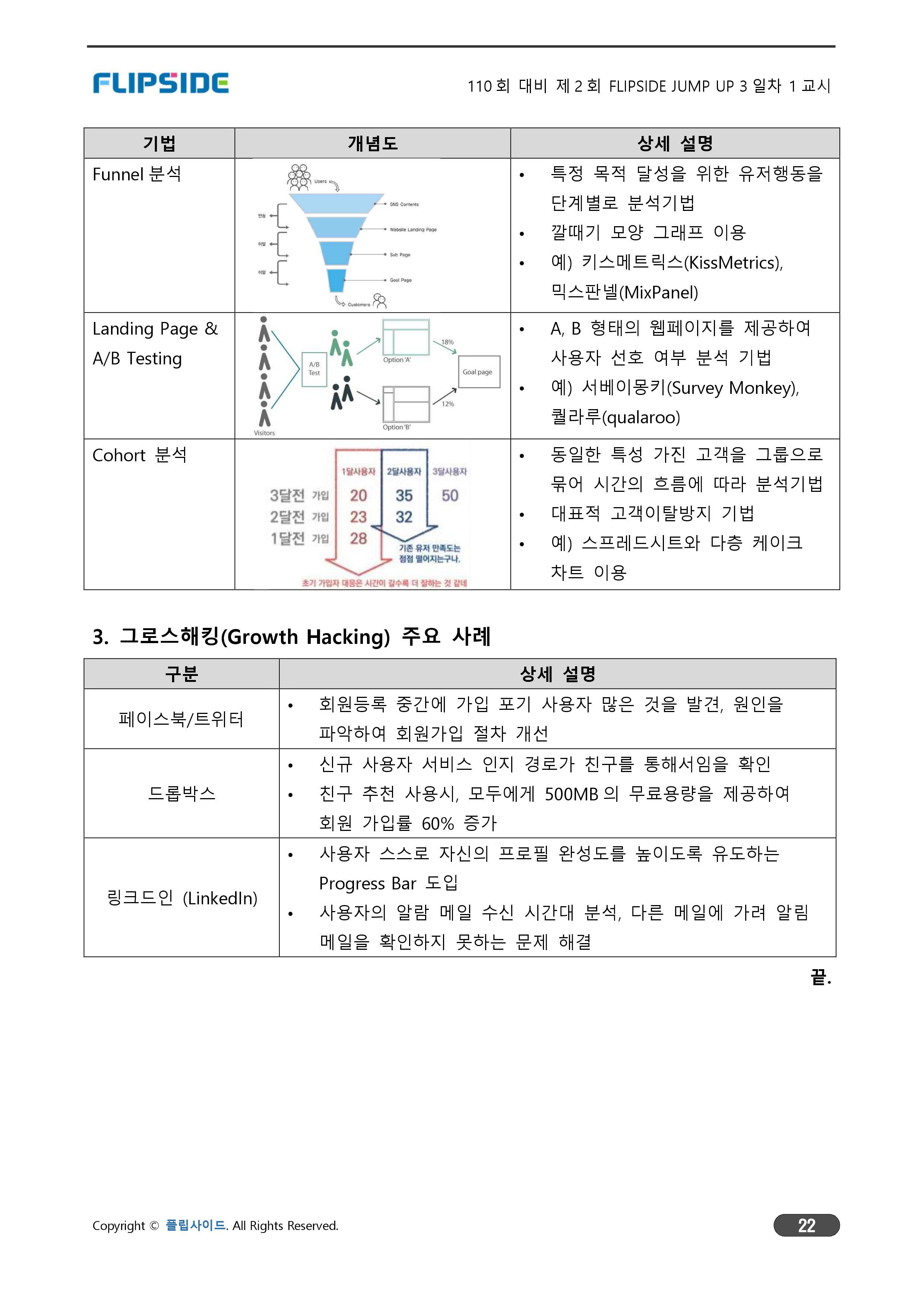 [기법] 사용자 설문조사, Funnel 분석, A/B Test, Cohort 분석