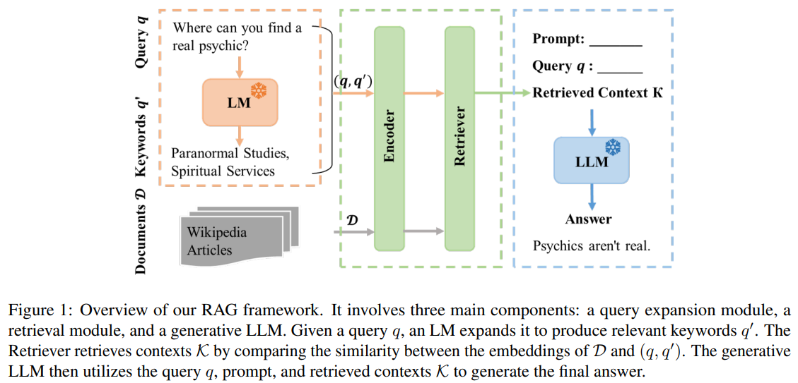 - 생성기 generator : 사용자의 쿼리와 검색된 지식을 추론하여 인라인 대화형 답변을 제공하는 LLM.