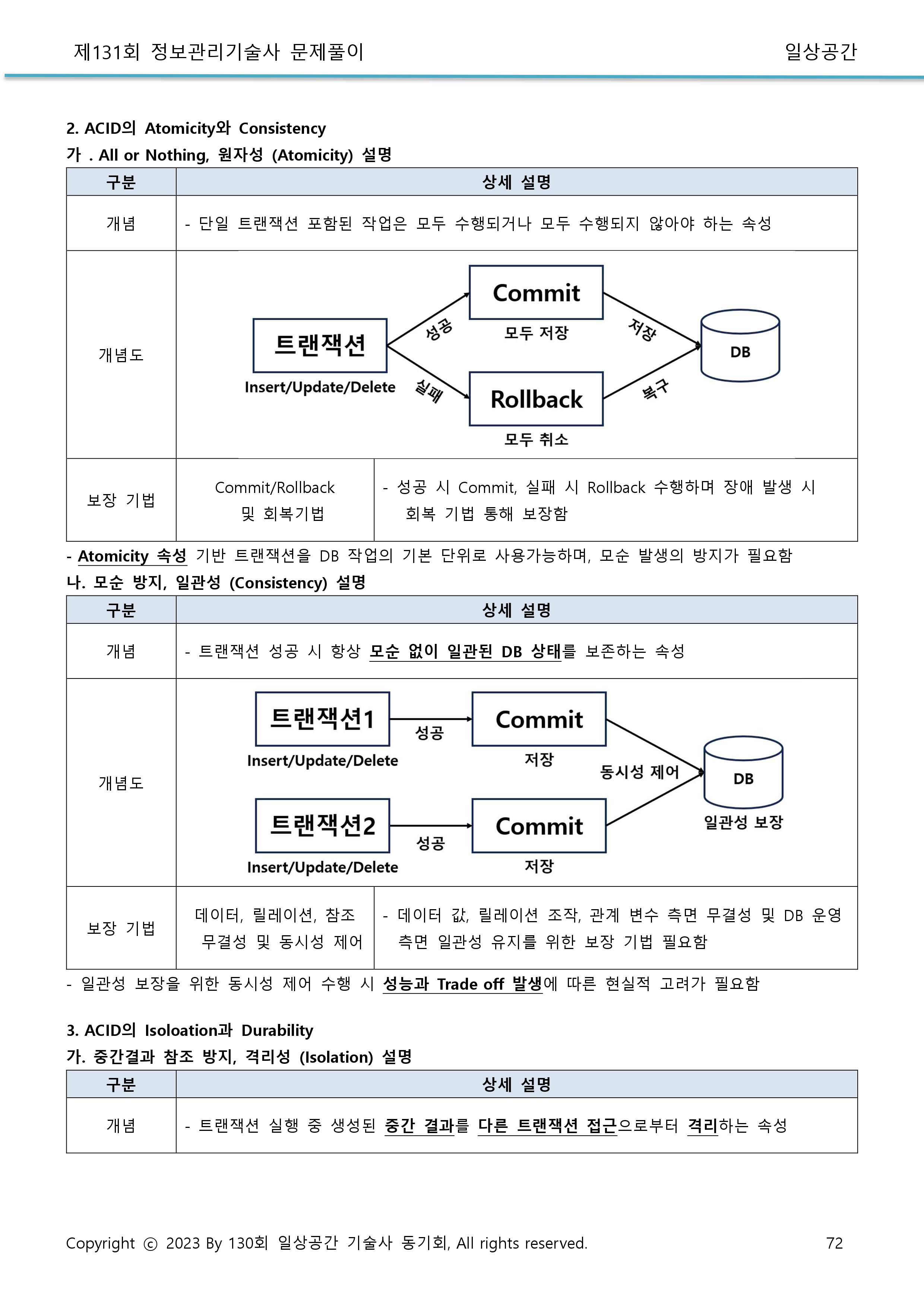 [특징] 원자성, 커밋/롤백, 일관성, 고립성, 지속성
