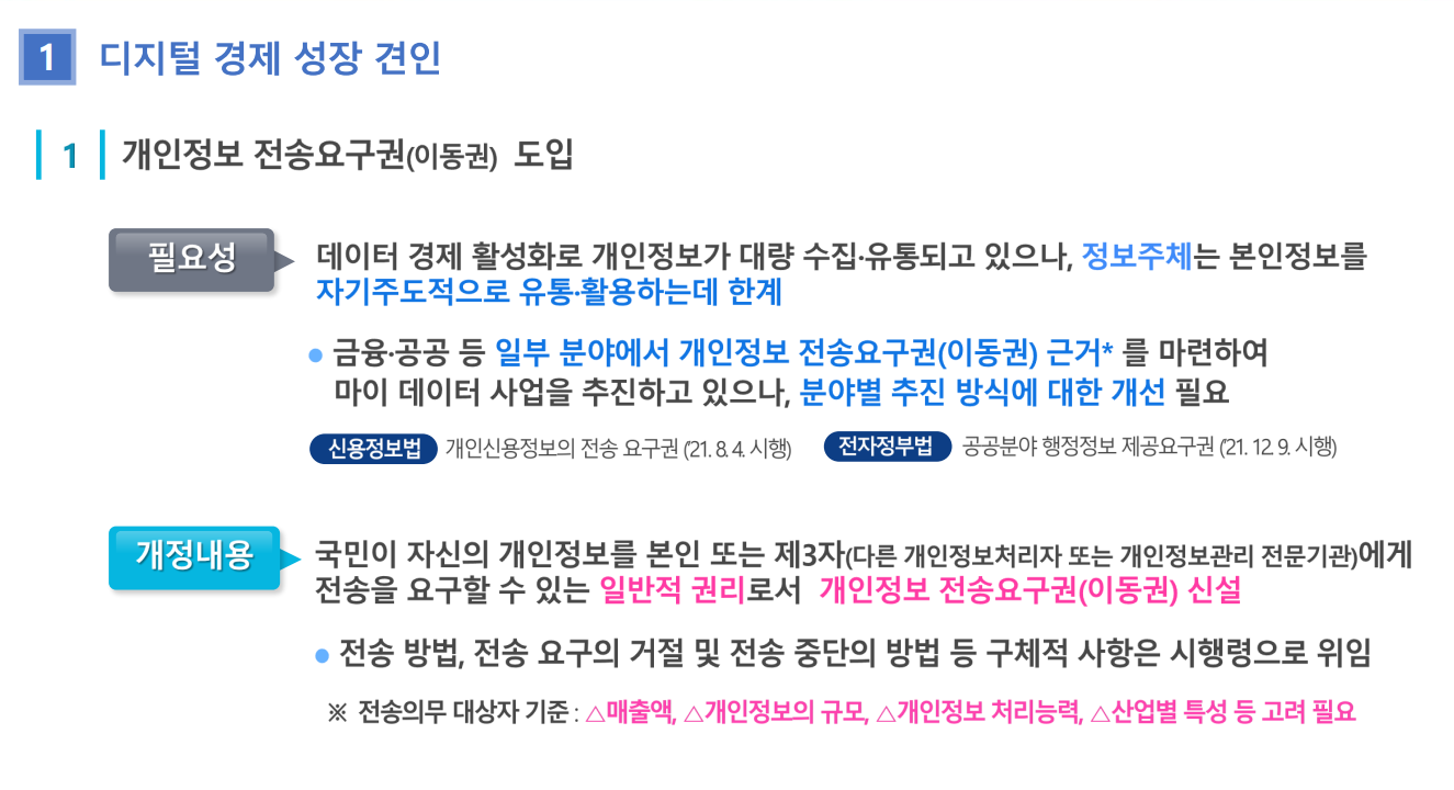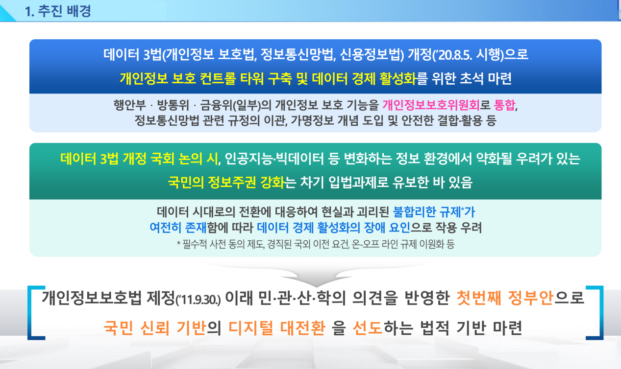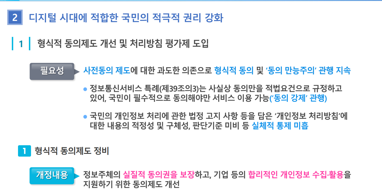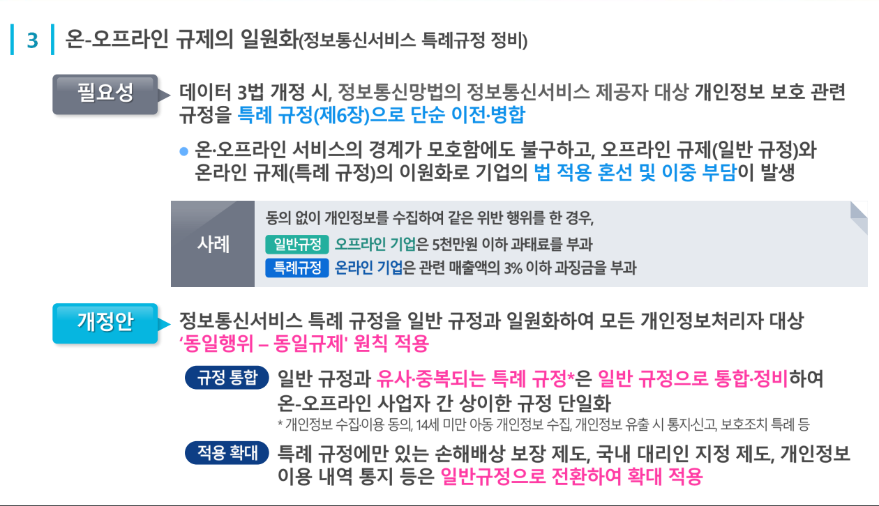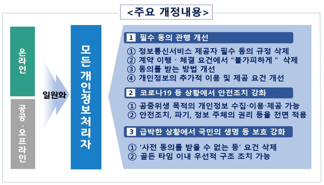 온라인-오프라인으로 이원화되어 있는 개인정보 처리 기준을 디지털 환경에 맞게 일원화하는 등