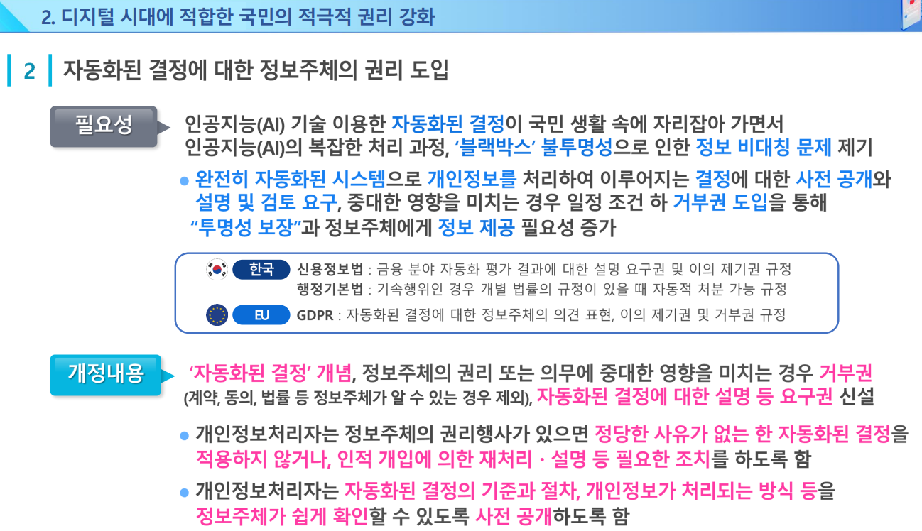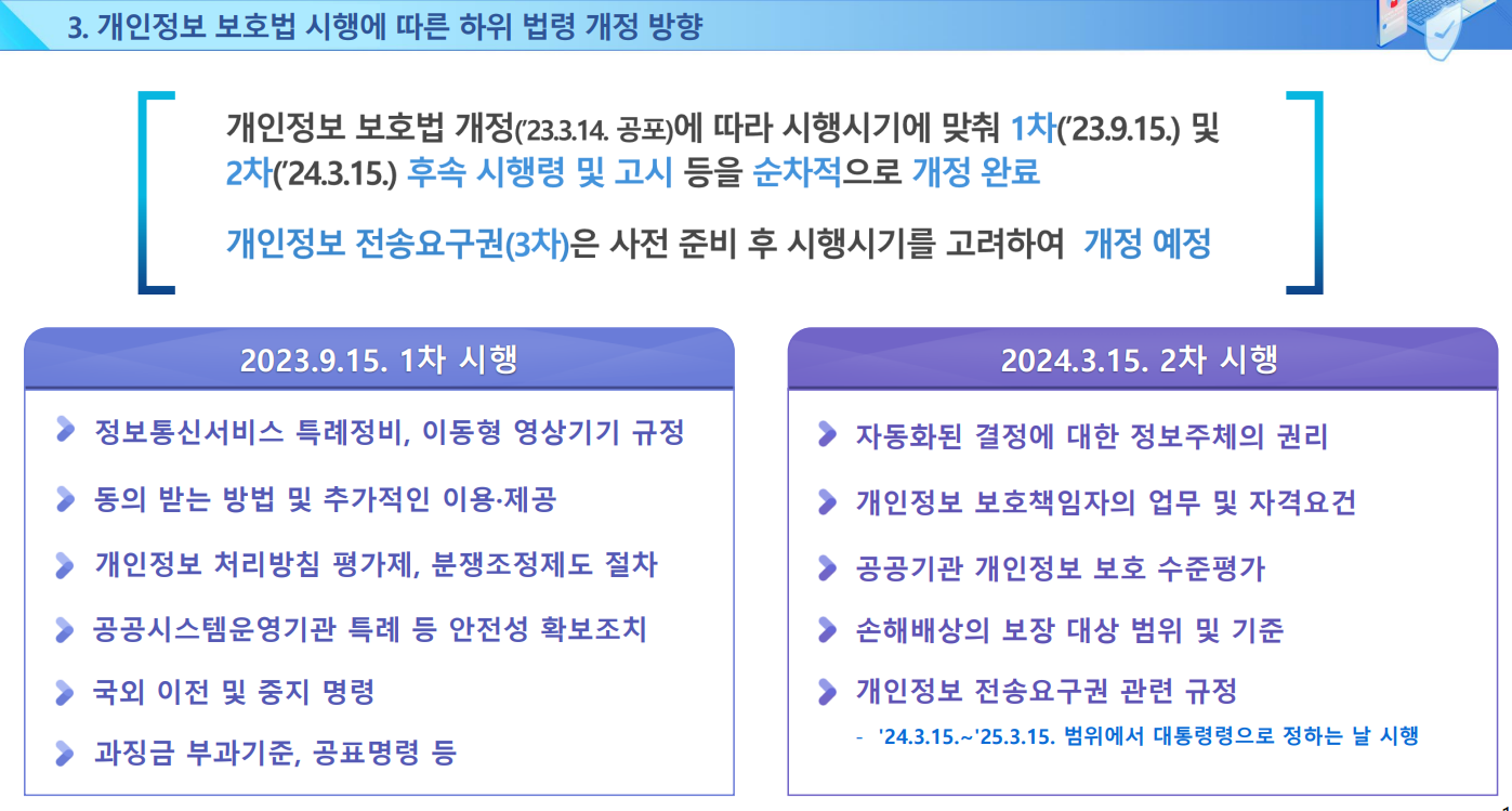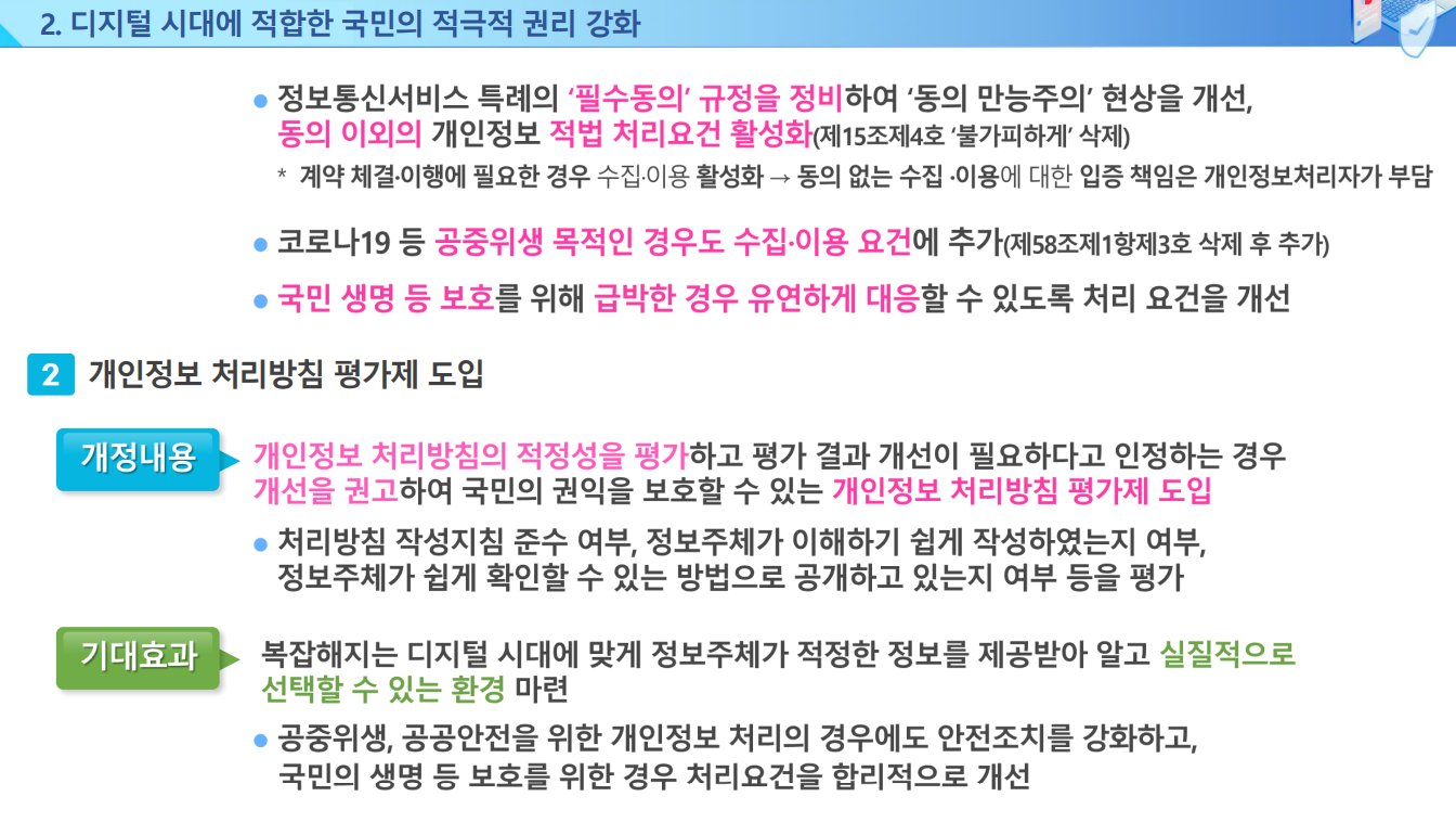 2023년 9월 15일 시행된 개정 개인정보 보호법에는 정보주체인 국민의 권리는 실질적으로 보장하면서