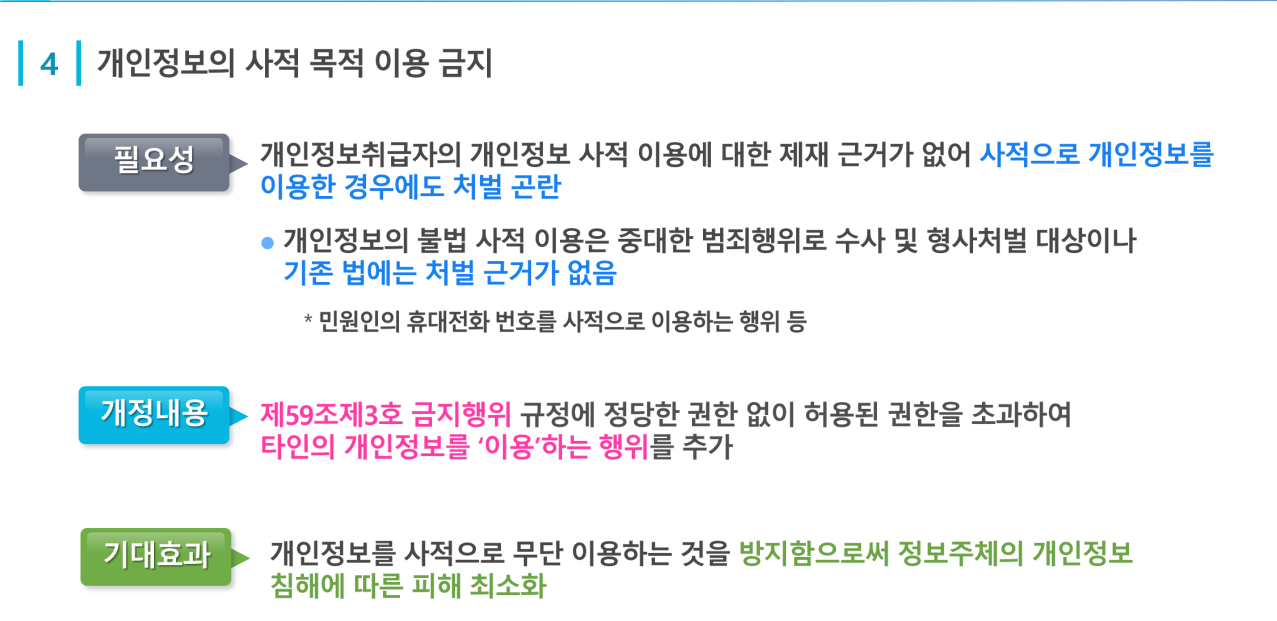 법 개정의 취지를 설명하고 법령 규정사항과 개인정보처리자가 유의해야 할 사항 등을 안내함으로써
