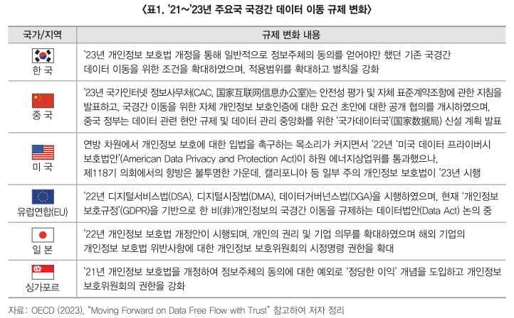 디지털 통상 시대, 신뢰 기반 데이터 이동을 위한 주요 규범 비교 및 시사점