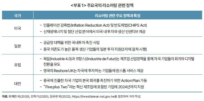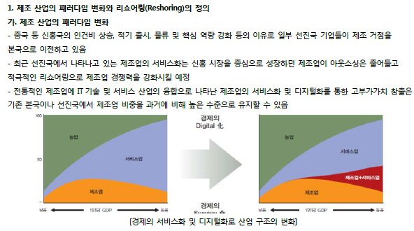 - 낮은 물류비용과 더 단순한 공급망을 기반으로 비용 절감을 목표로 제조 거점을 본국으로 이전하는 현상