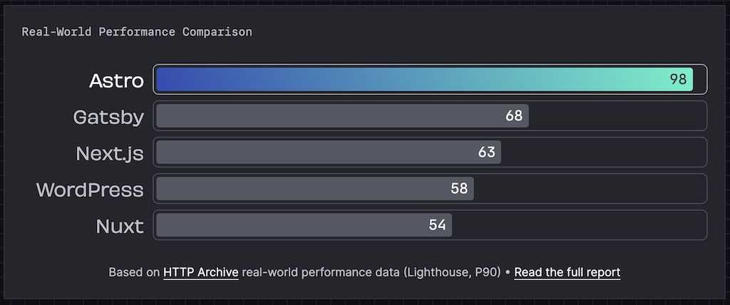 - Astro로 구축된 웹사이트는 서버에서 렌더링을 처리하여 기본적으로 성능이 뛰어남