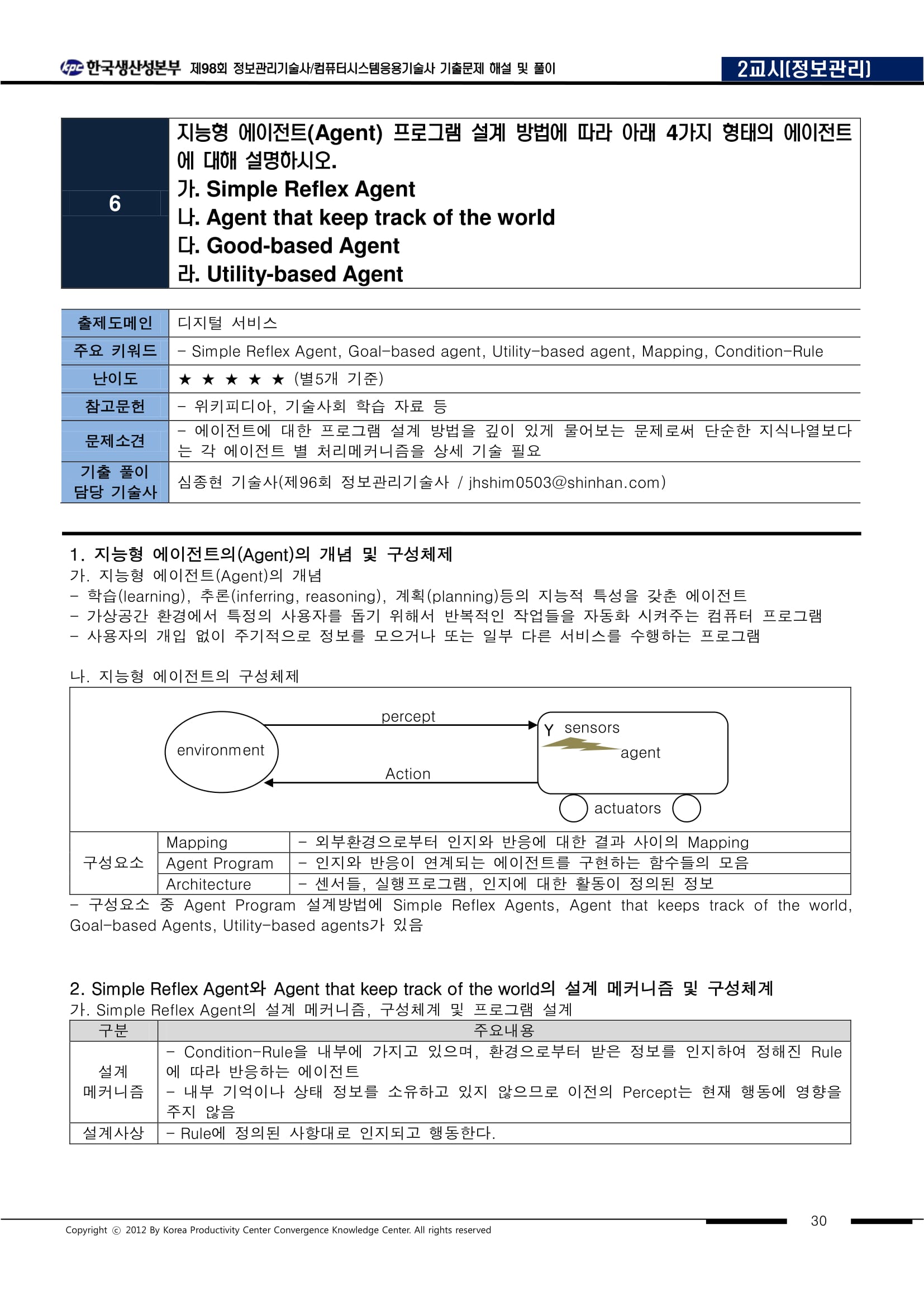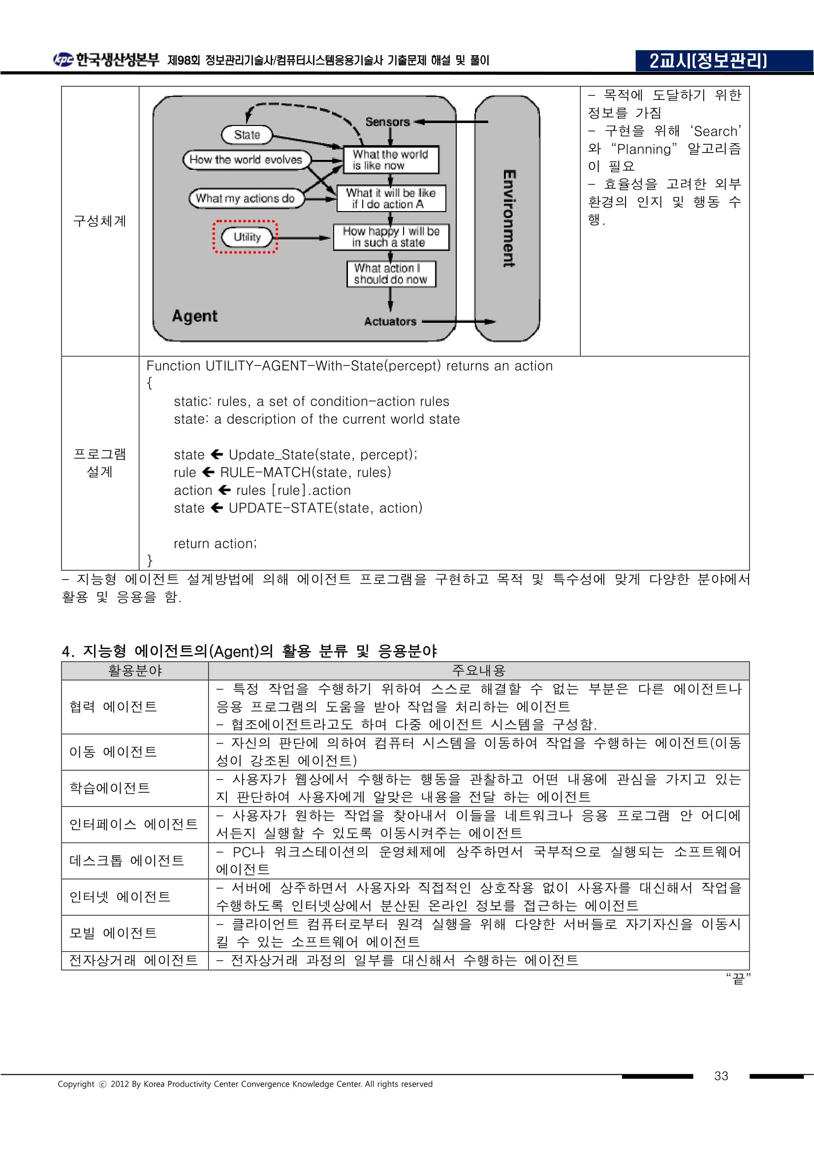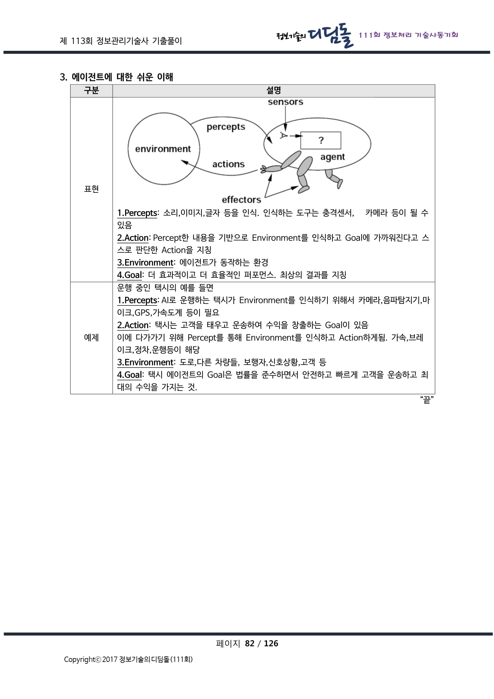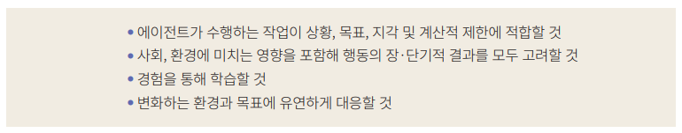 | 에이전트의 정의 | 특정 환경에서 자율적으로 작동하며, 주어진 목표를 달성하기 위해 데이터를 수집, 분석, 의사결정을 수행하고 행동하는 AI 시스템. |