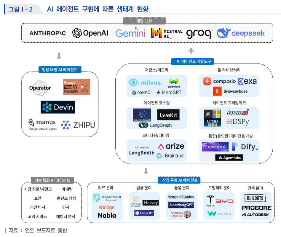 | - 멀티 에이전트 시스템(MAS): 여러 AI 에이전트가 협력하여 복잡한 문제 해결. |