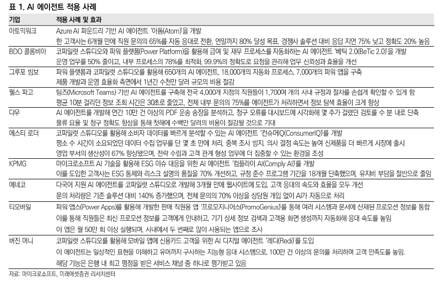 | Oracle | ERP 및 HR 등의 업무용 SaaS “Oracle Cloud Applications”에서 50개 이상의 AI 에이전트 제공. 인사, 회계 외에도 공급망 관리 및 고객 관리 등의 업무용 AI 에이전트 마련 |