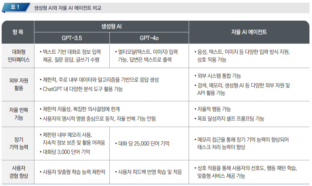 | 기술적 한계 | - 신뢰성과 투명성: AI 에이전트의 의사결정 과정 설명 및 책임 문제. |