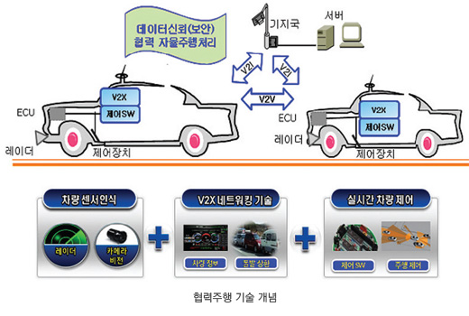 V2V 통신을 사용하여 차량의 간격을 일정하게 유지함으로써 공기저항을 최소화하는 주행방식