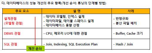 [성능개선항목] DB설계관점->DBMS관점->SQL관점 순서로 성능개선