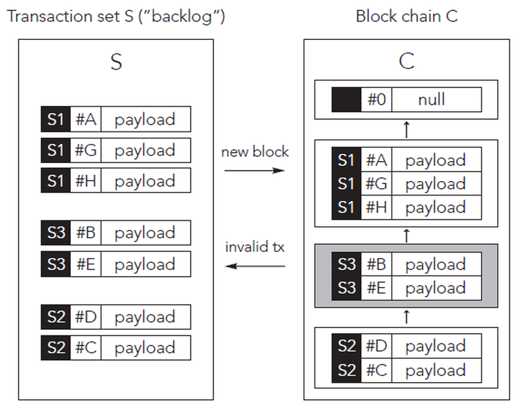 - S : 트랜잭션 집합, "백로그"